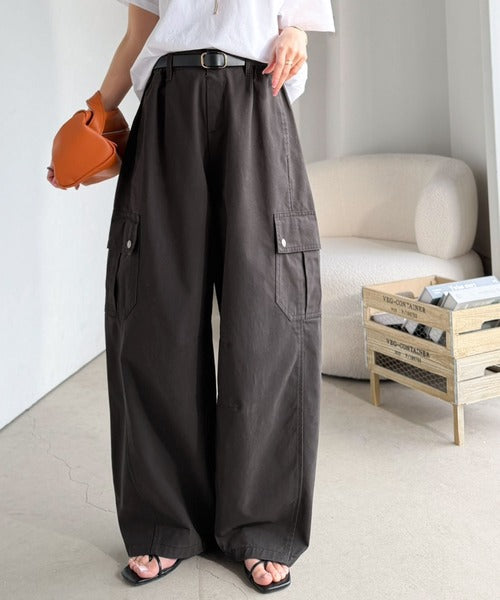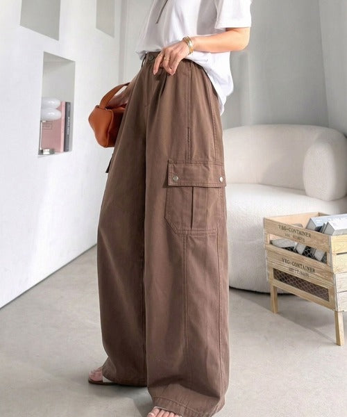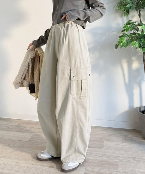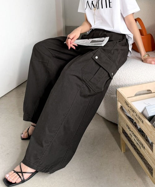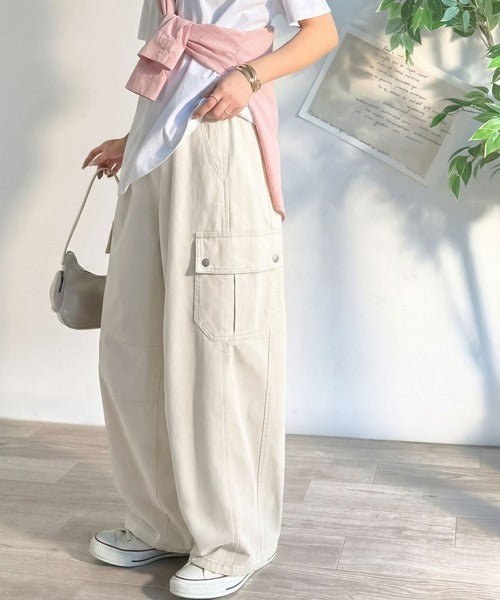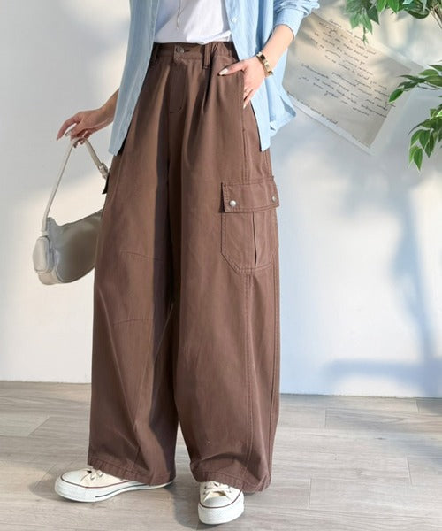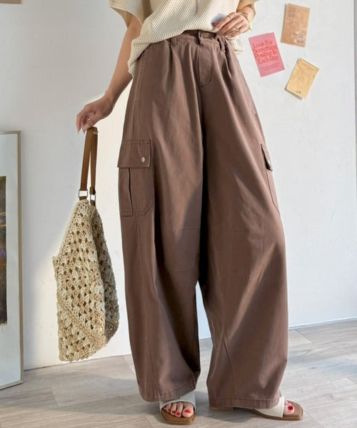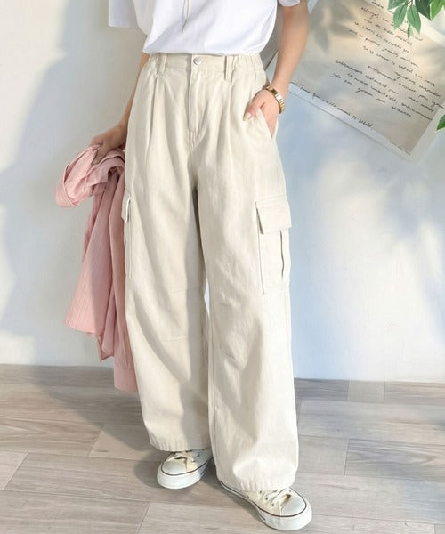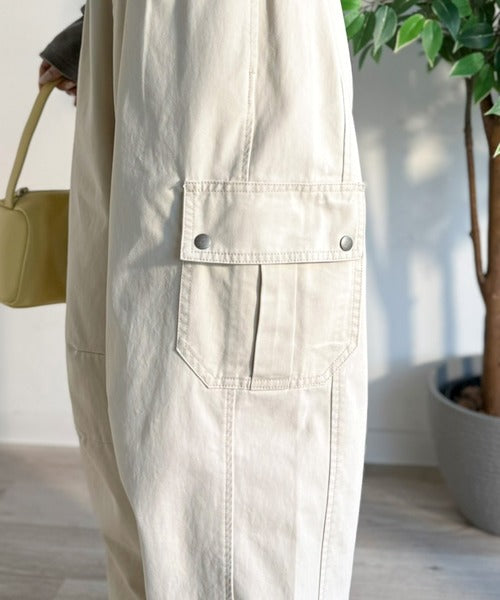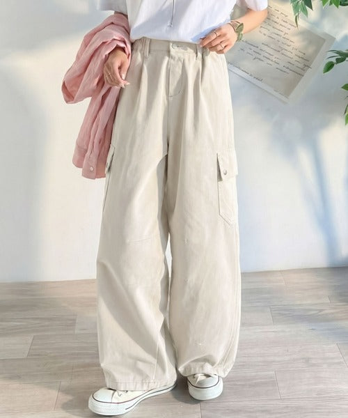 《JaVaジャバコラボ》程よい抜け感でベーシックに着回せる♪ 綿100%の快適素材◎タックワイドカーゴパンツ jv1015095