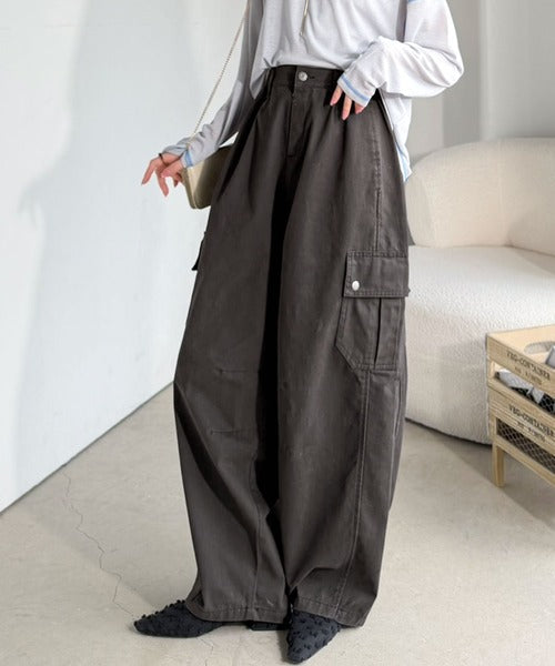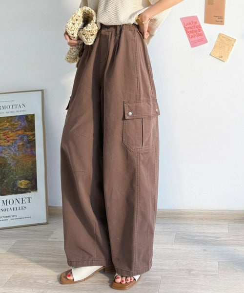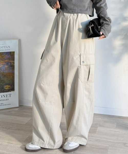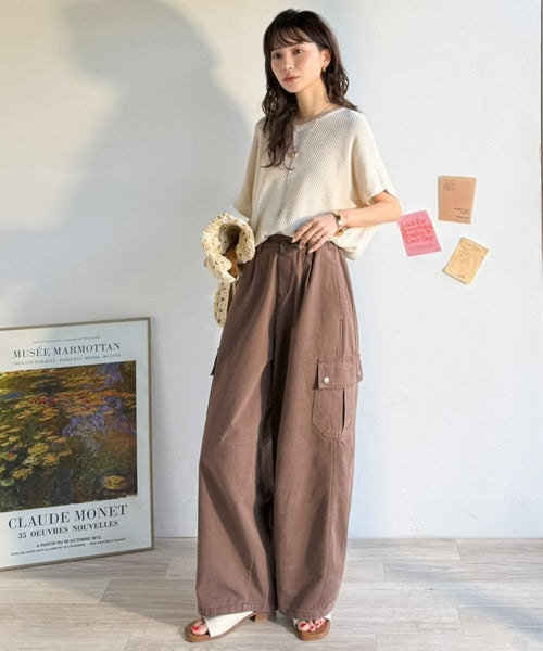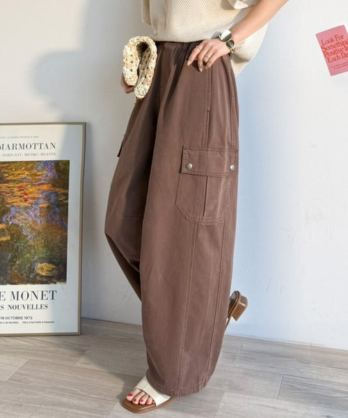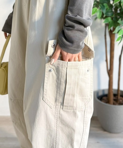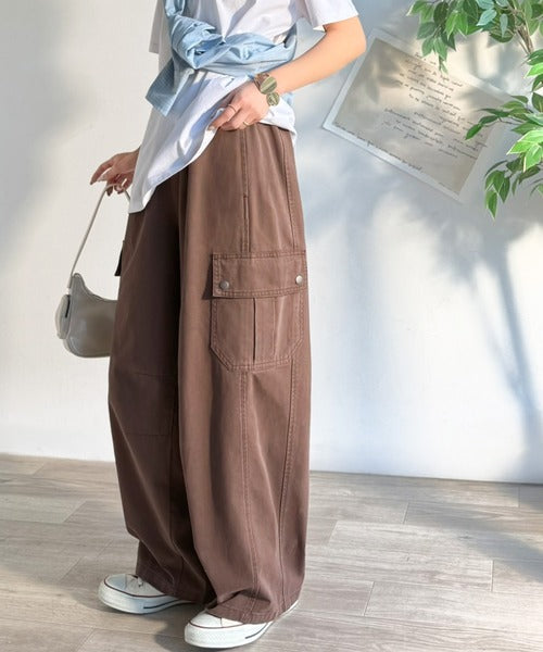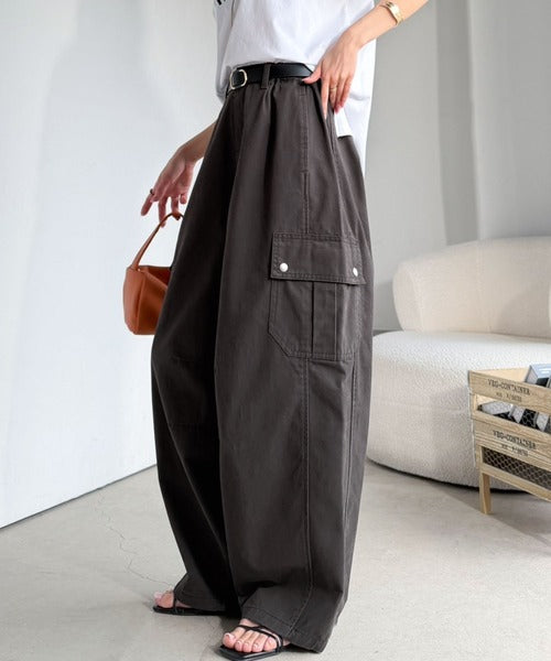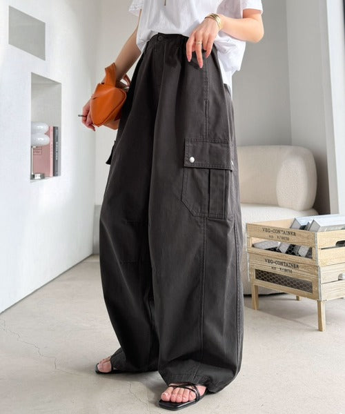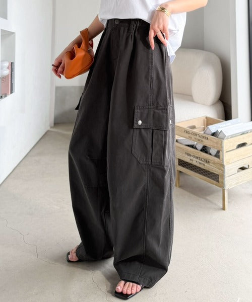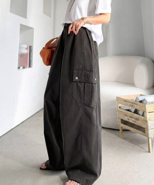《JaVaジャバコラボ》程よい抜け感でベーシックに着回せる♪ 綿100%の快適素材◎タックワイドカーゴパンツ jv1015095
