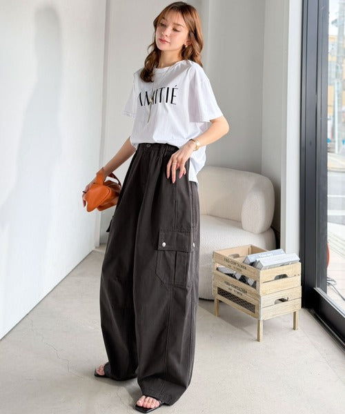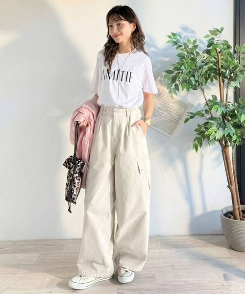 デザイン性のあるパンツなので、シンプルTシャツを合わせて