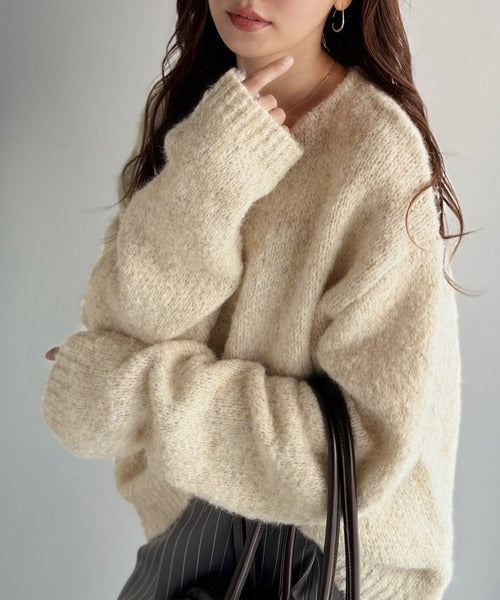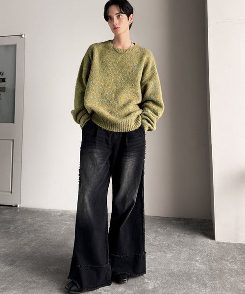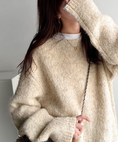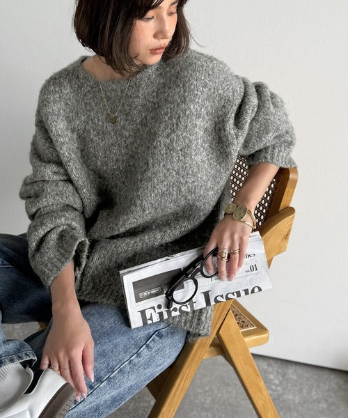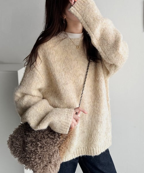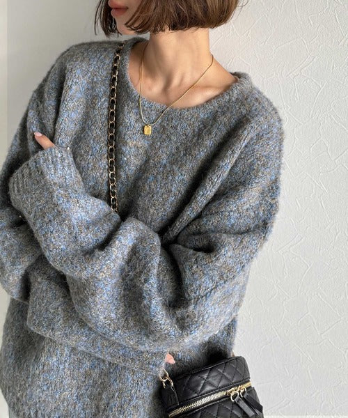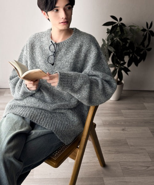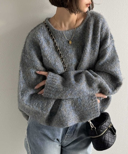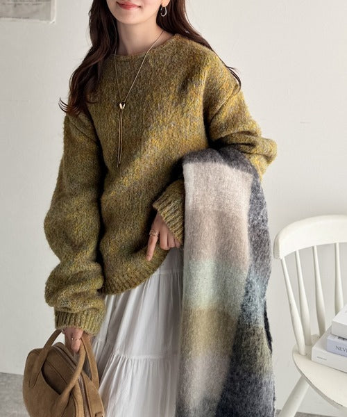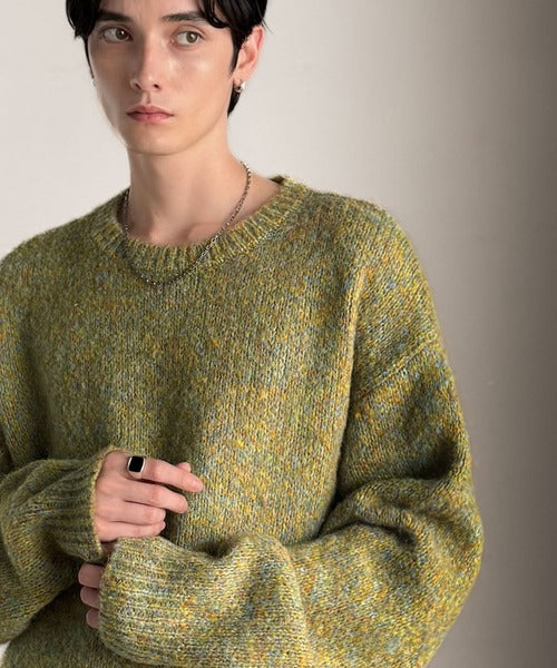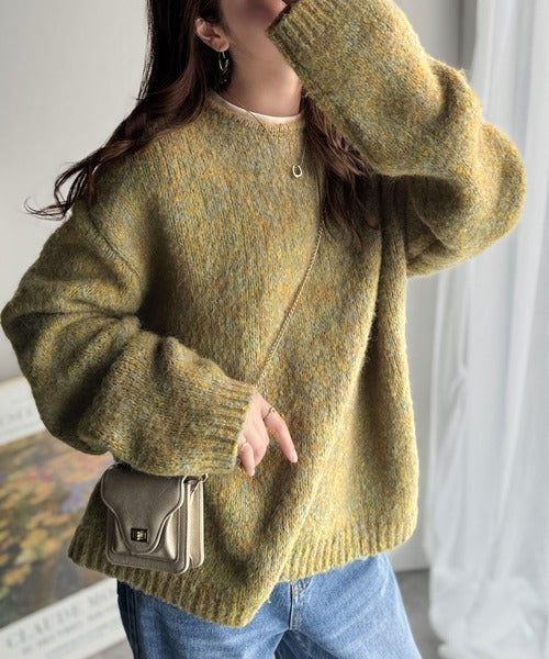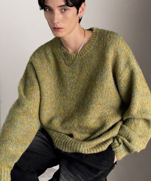 【Classical Origin】「深みのある大人に。」クルーネックミックスカラー糸ニット(長袖)/Crew neck mixed color knit ao1020308