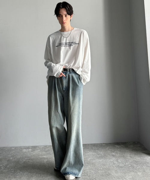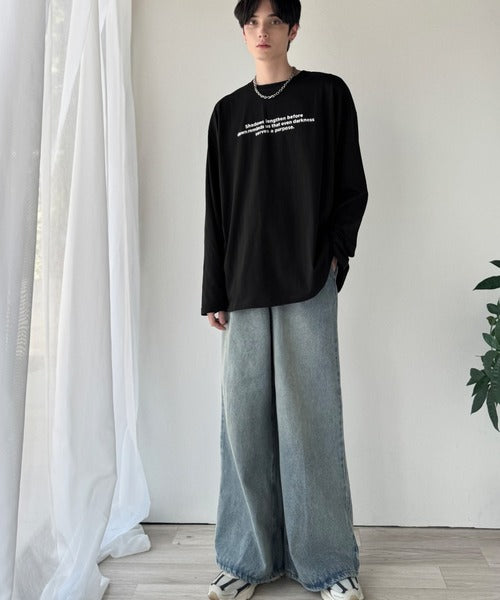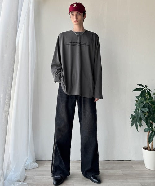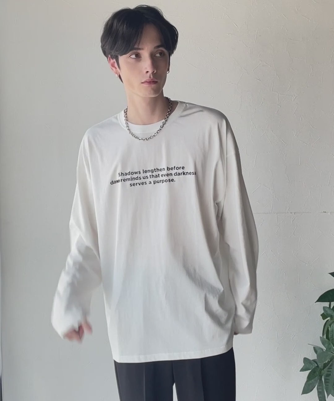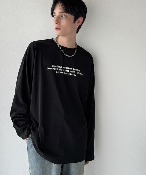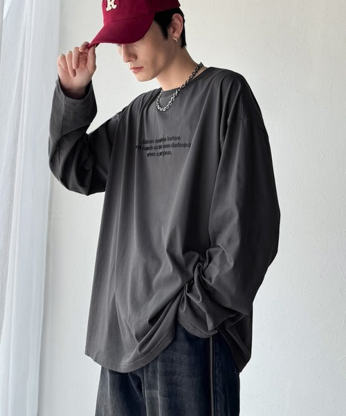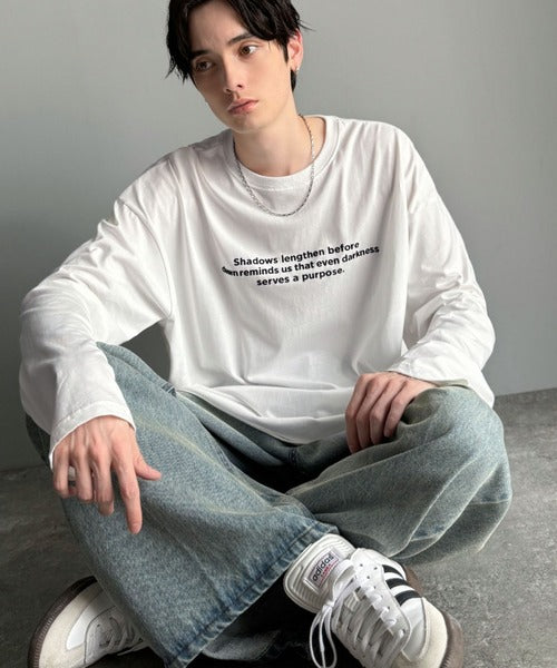 シンプルな英字ロゴがアクセントのロングTシャツ。
