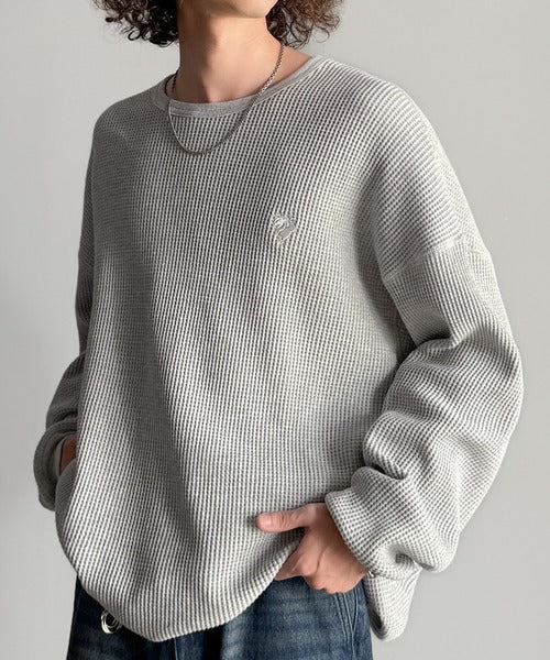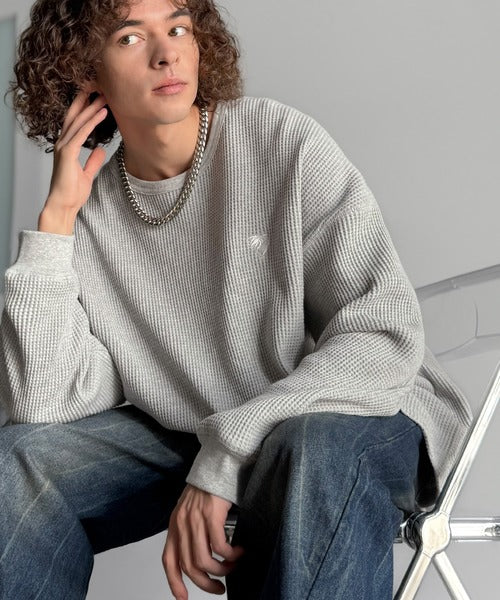【Classical Origin】「ヘビーウェイト一択。」綿100%ワッフルクルーネックビッグTシャツ/Cotton 100% Waffle Crew Neck Big T-Shirt co0780014