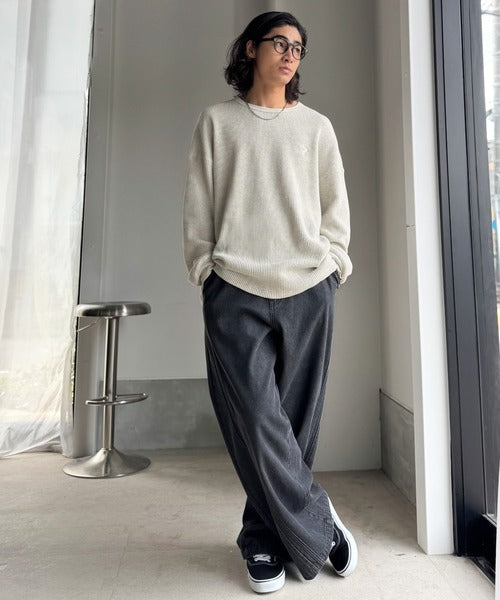 リラックス感のある余裕と程よい抜け感を演出。クルーネックは首回りをすっきり見せ、