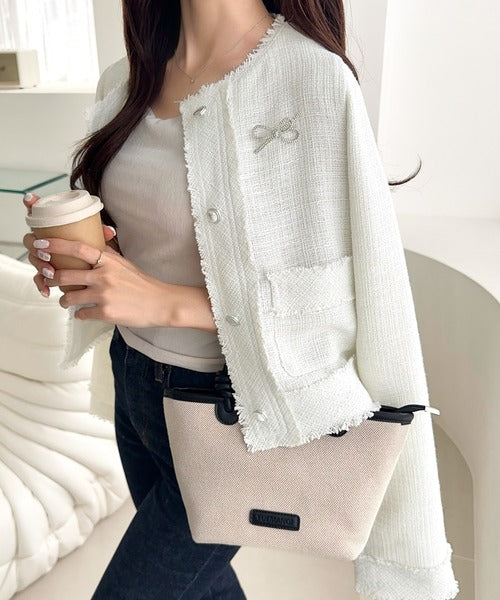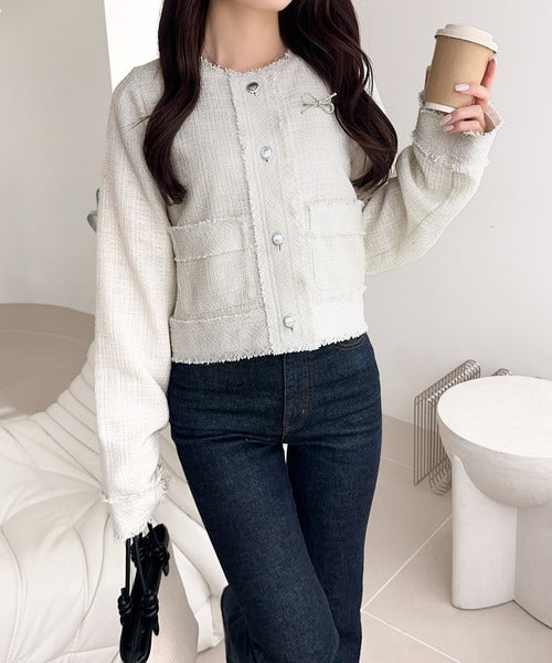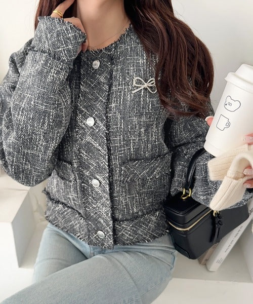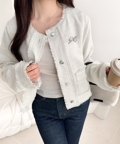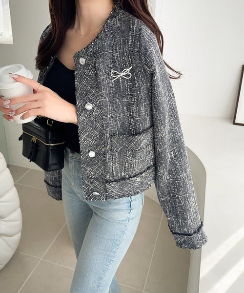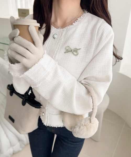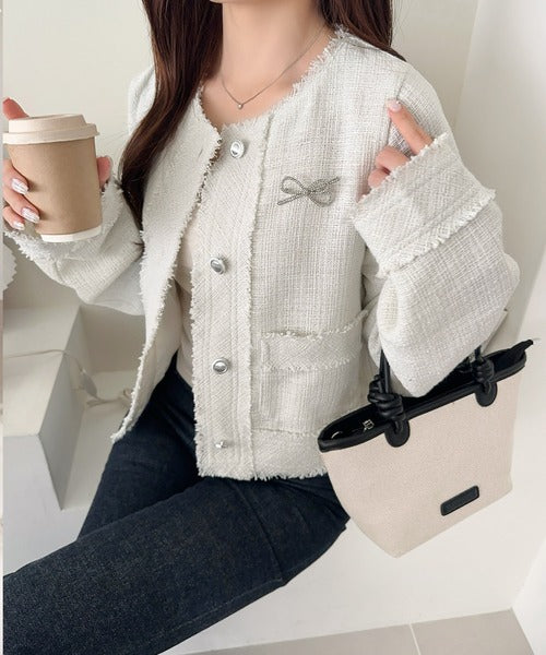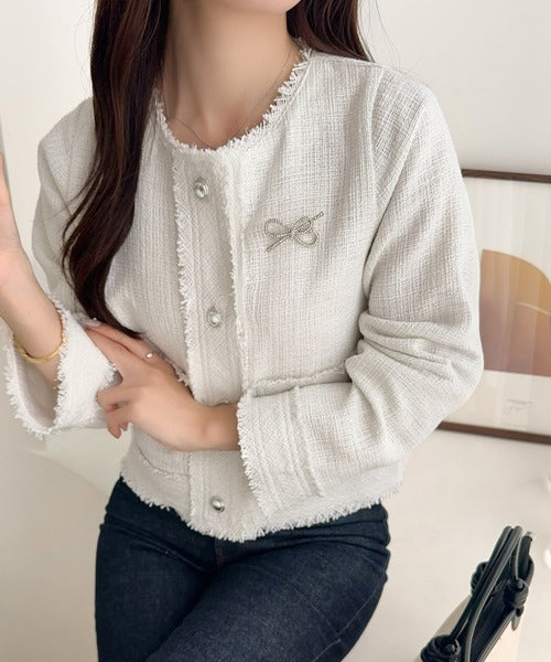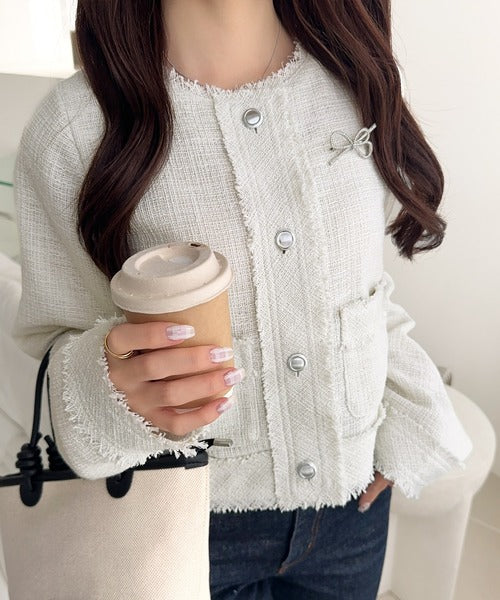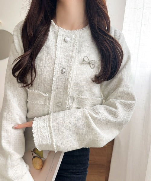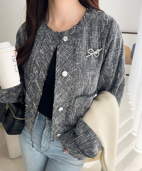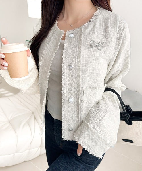 きらめく魔法に甘さを添えて♪リボンブローチ使い長袖ラメ入りツイードジャケット(フォーマル) mi1019111