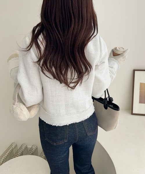甘さと煌めきを味方にする、大人の華やかジャケット♪
