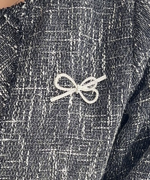 左胸のリボンブローチが大人ガーリーなアクセントになり、