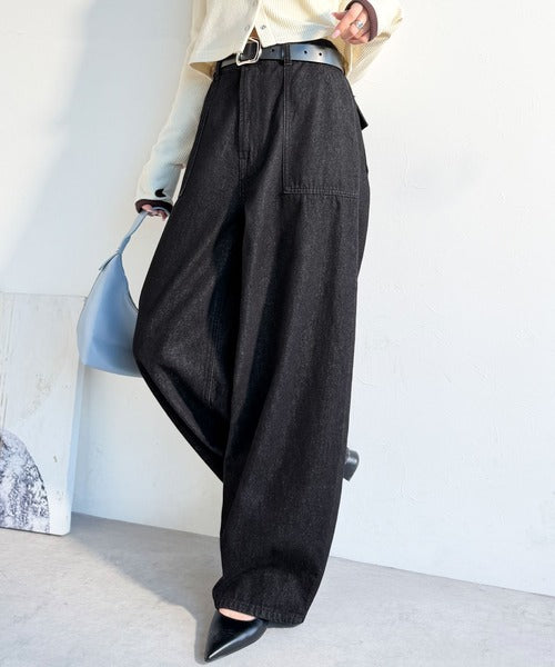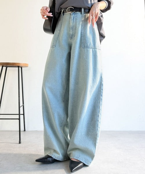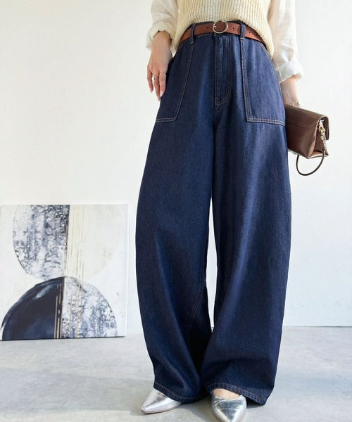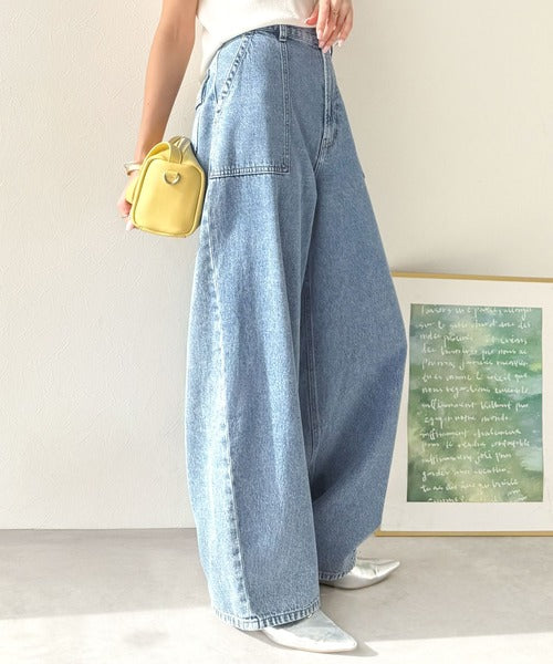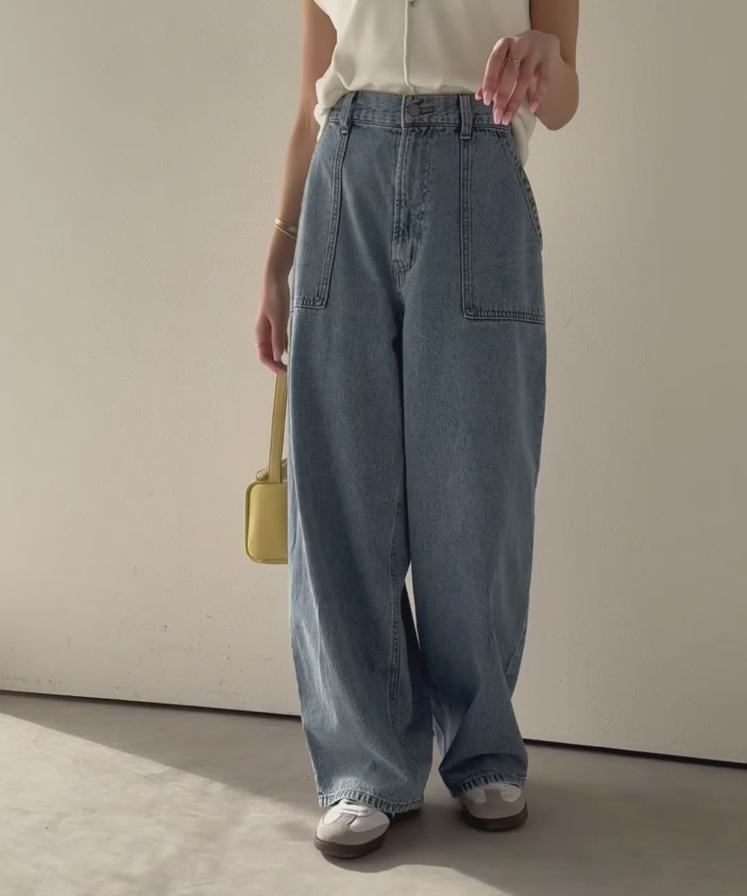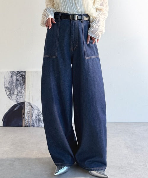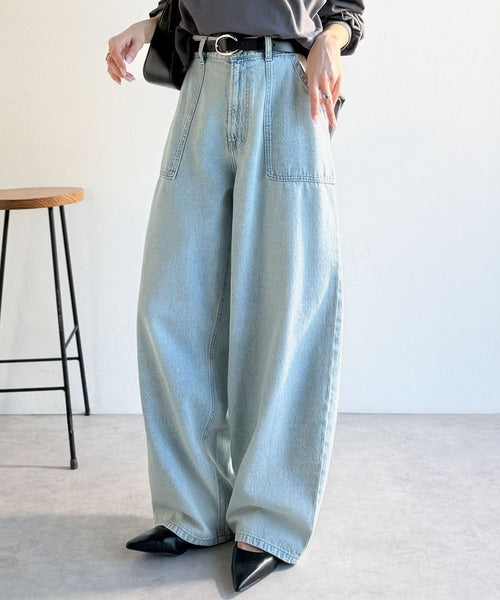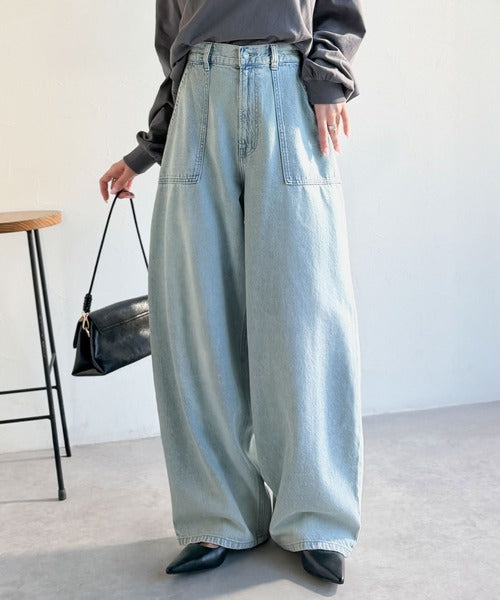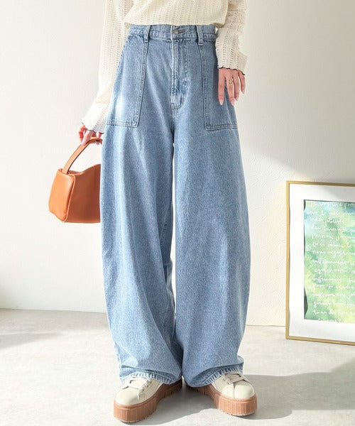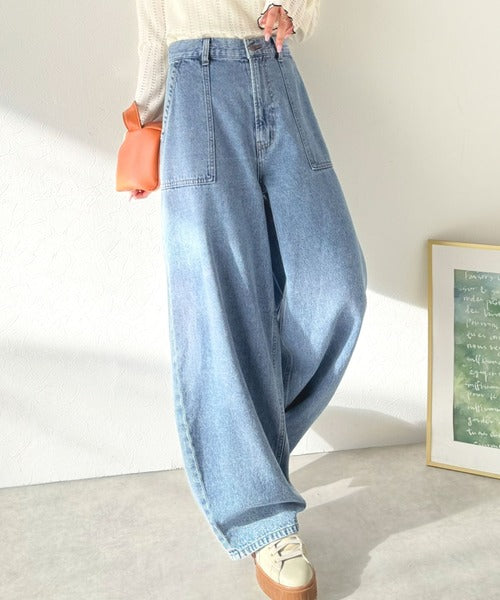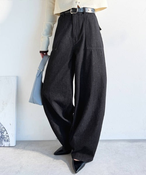ベイカーポケットをアクセントにした、裾に向かって丸みを持たせたバルーンシルエットのデニムパンツ。