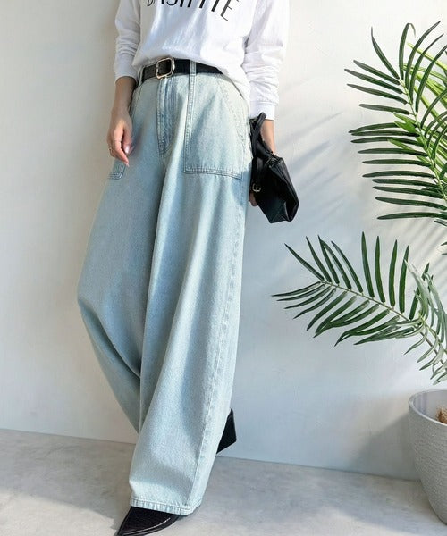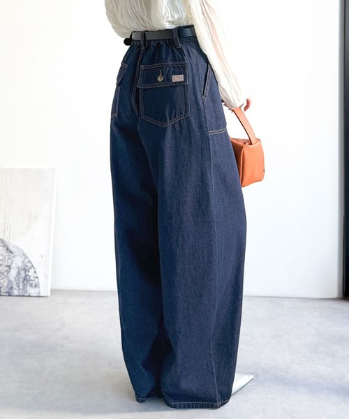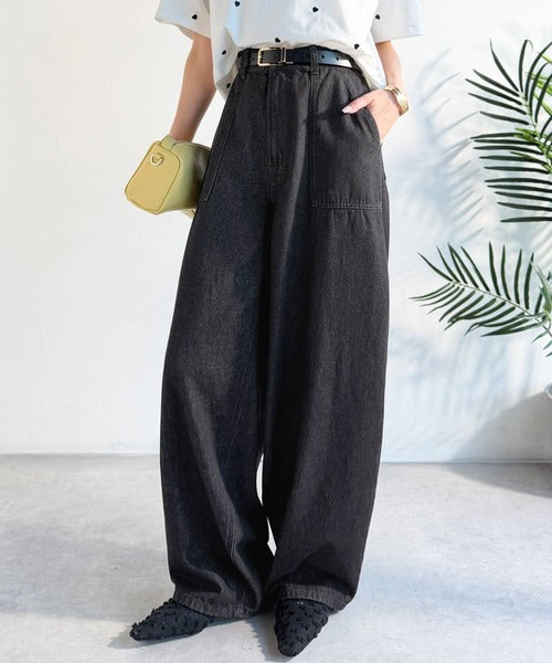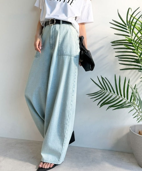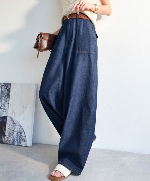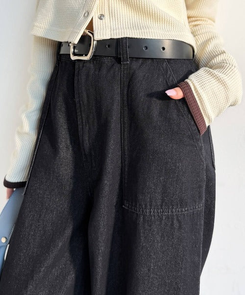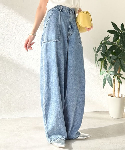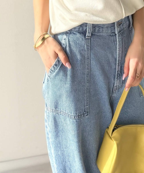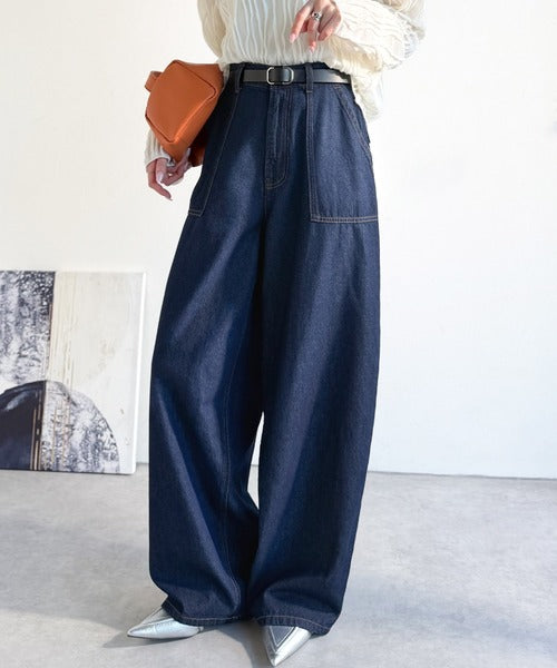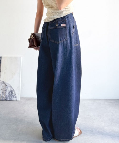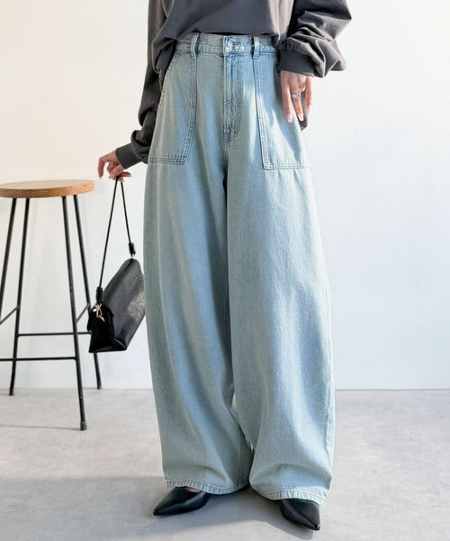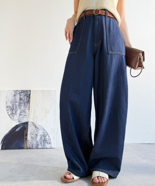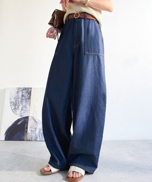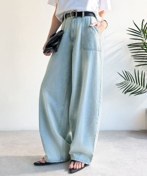 ベイカーポケットをアクセントにした、裾に向かって丸みを持たせたバルーンシルエットのデニムパンツ。