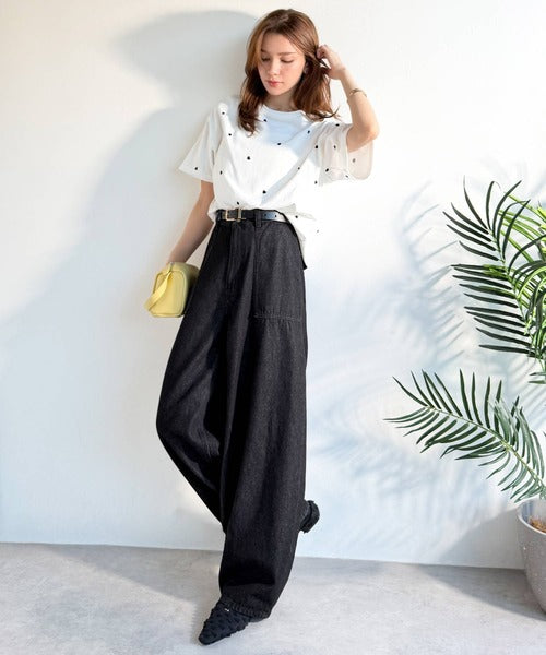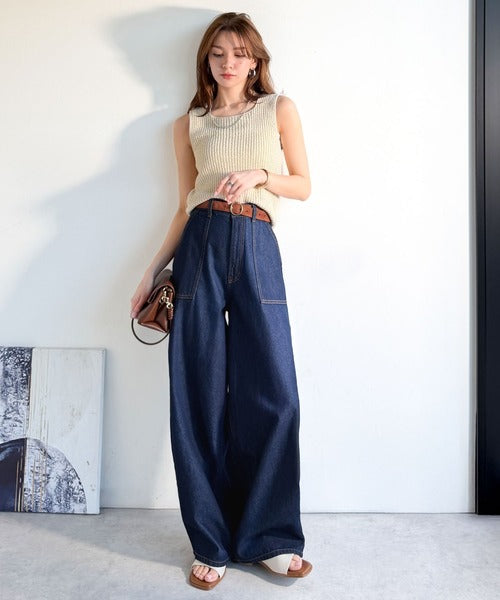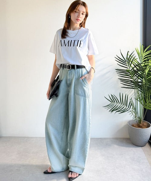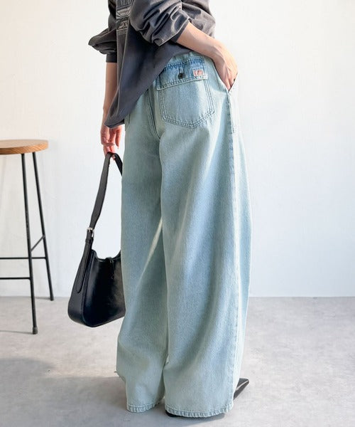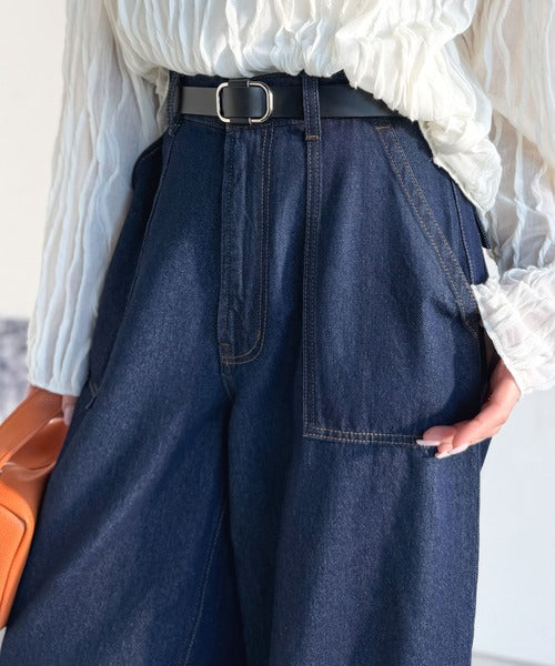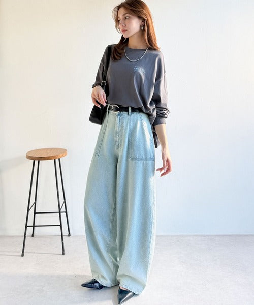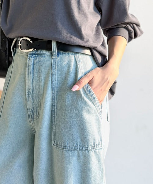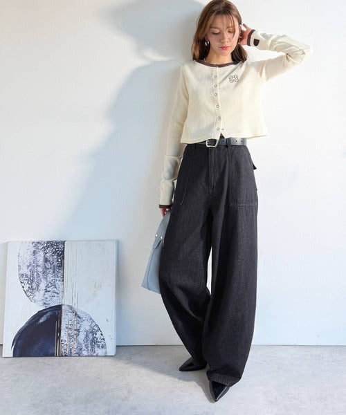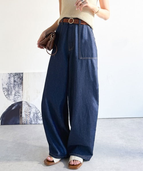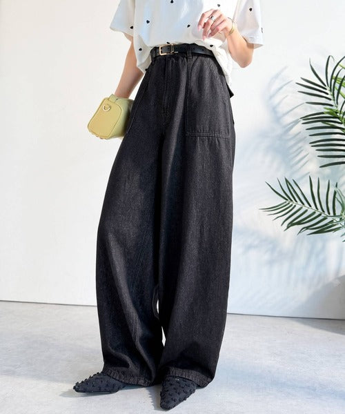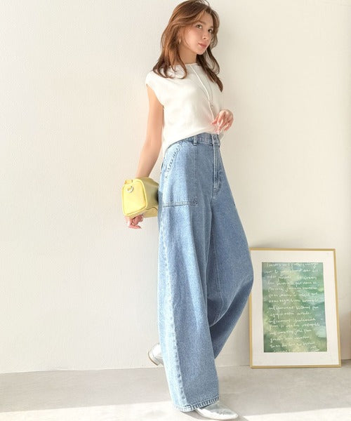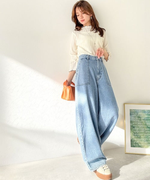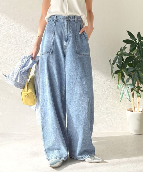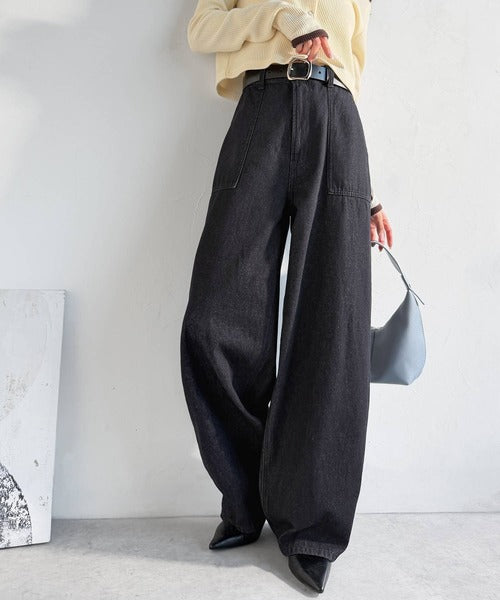ベイカーポケットをアクセントにした、裾に向かって丸みを持たせたバルーンシルエットのデニムパンツ。