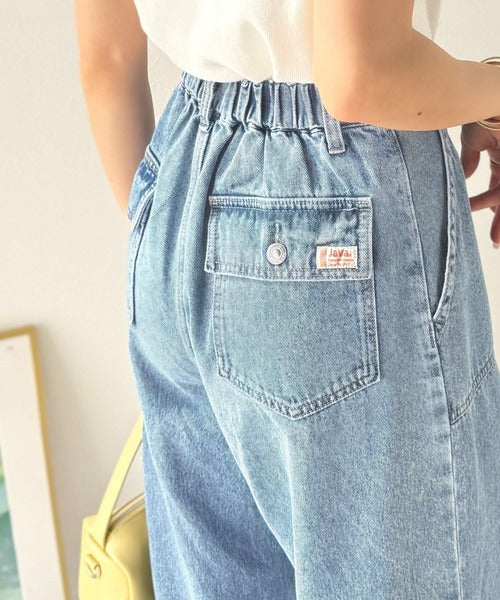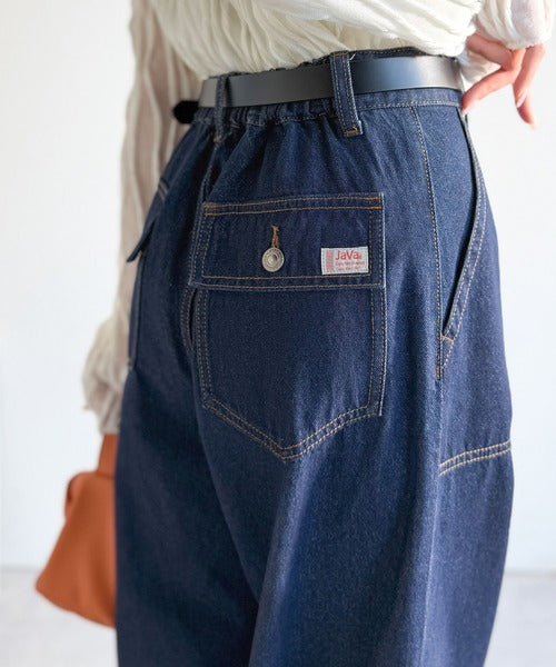 《JaVaジャバコラボ》 立体感でシルエット補正。ウエストゴムで履きやすい綿100%バルーンベイカーデニムパンツ jv1070188