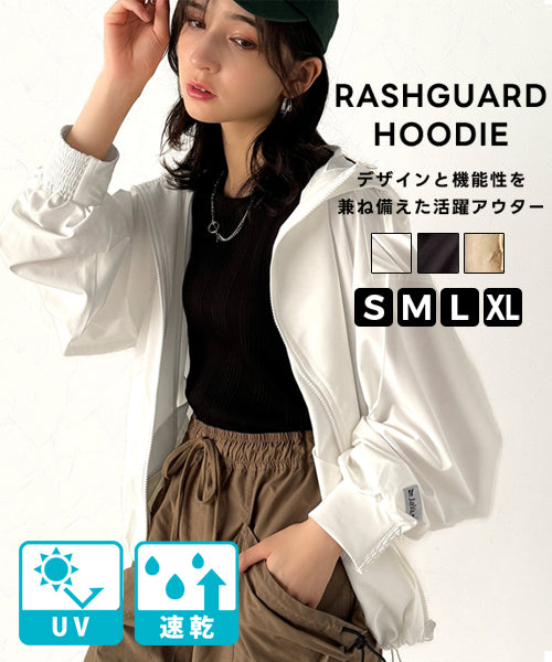 《JaVa ジャバコラボ》お洒落に多機能。水陸両用フィンガーホール付きUVカット吸水速乾ラッシュガードパーカー jv1260372