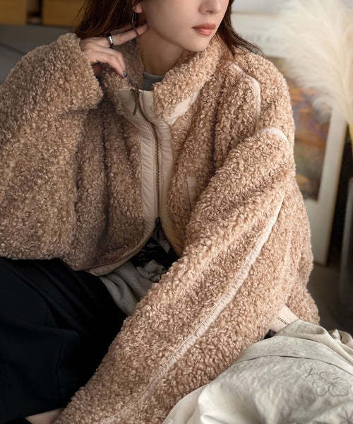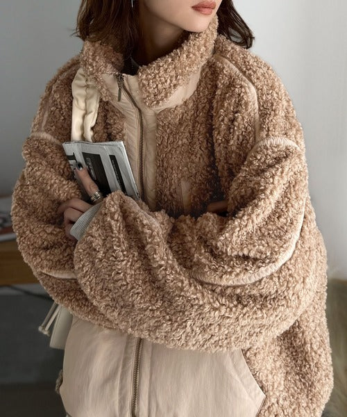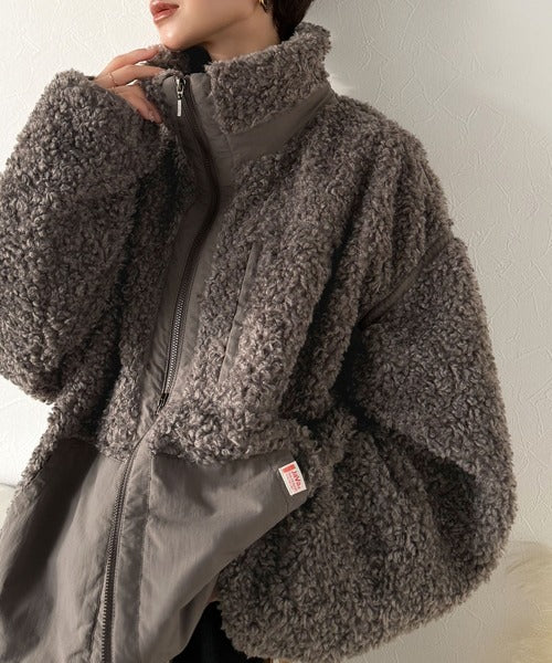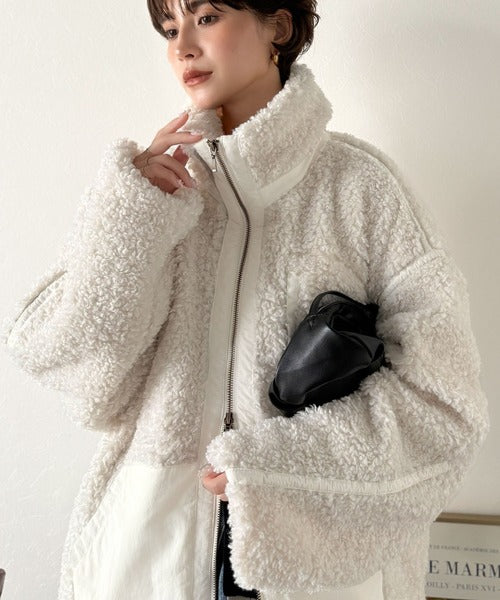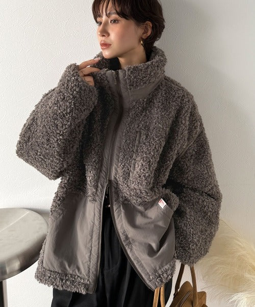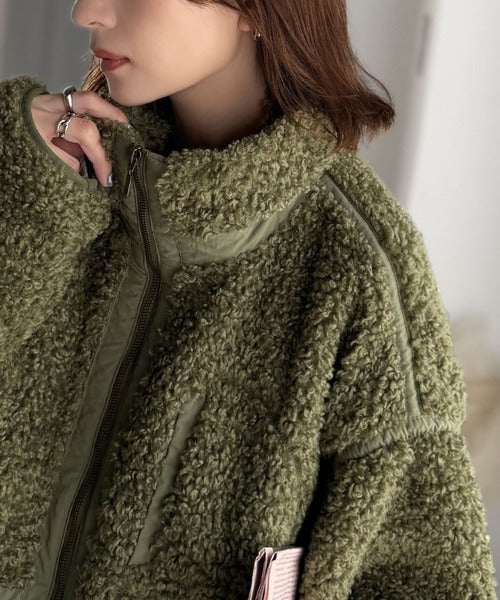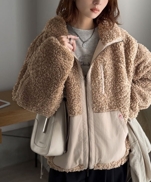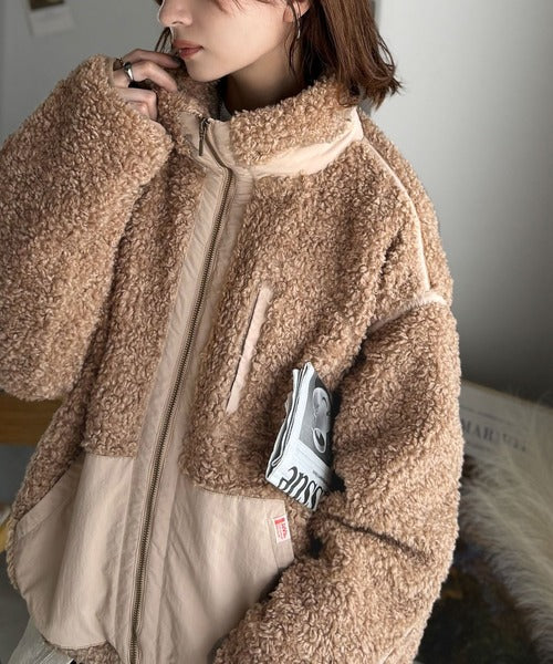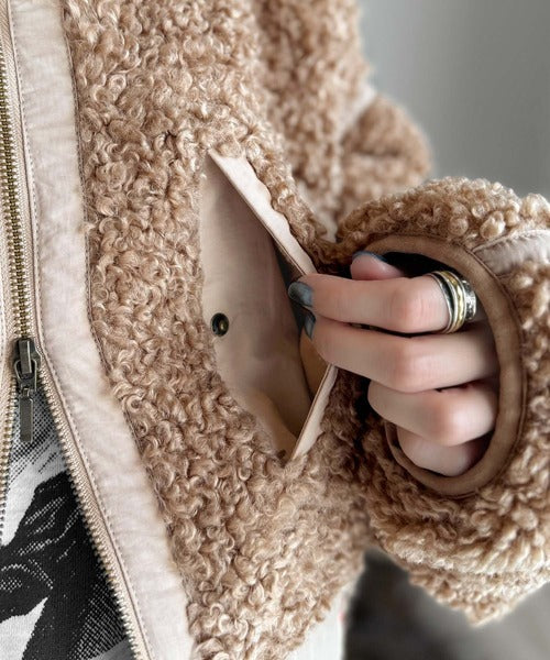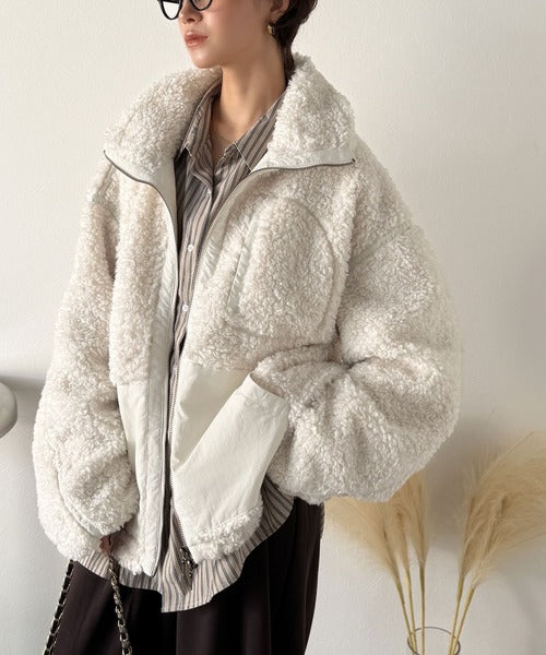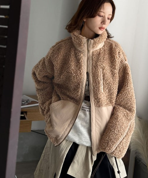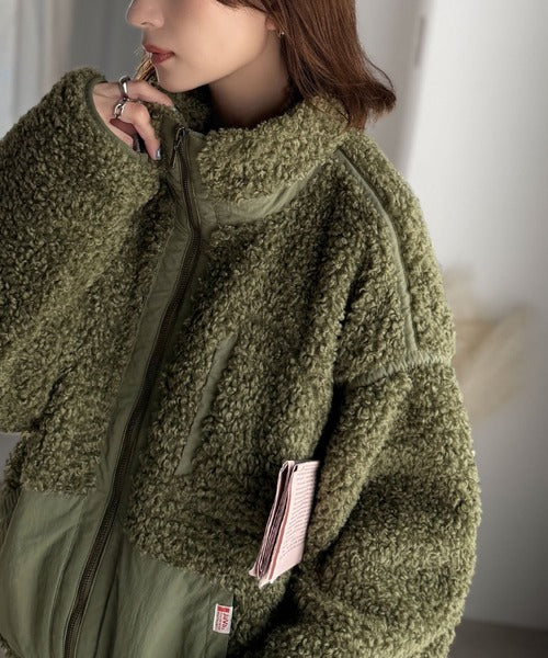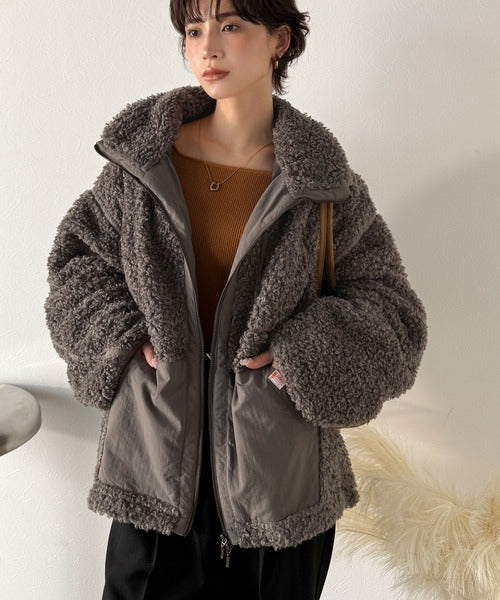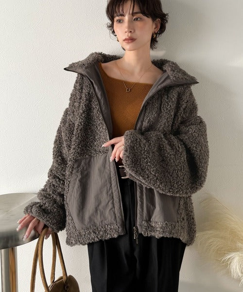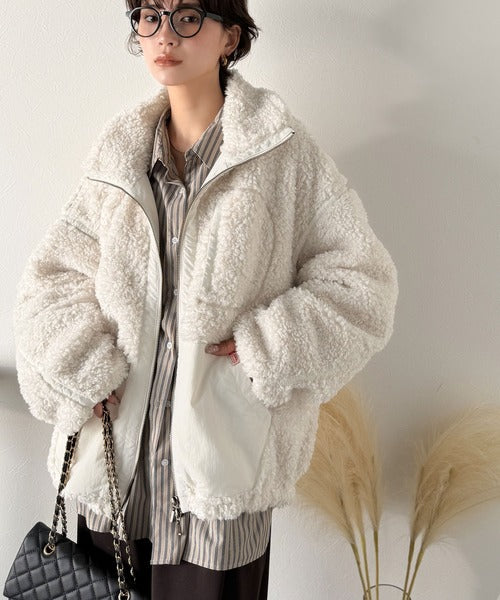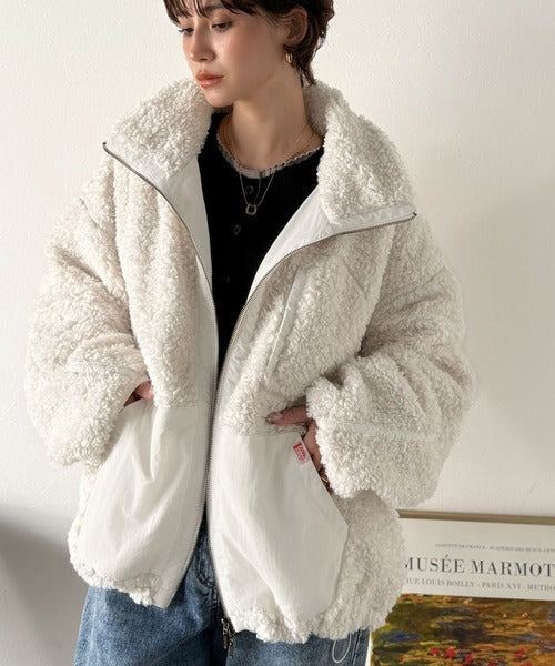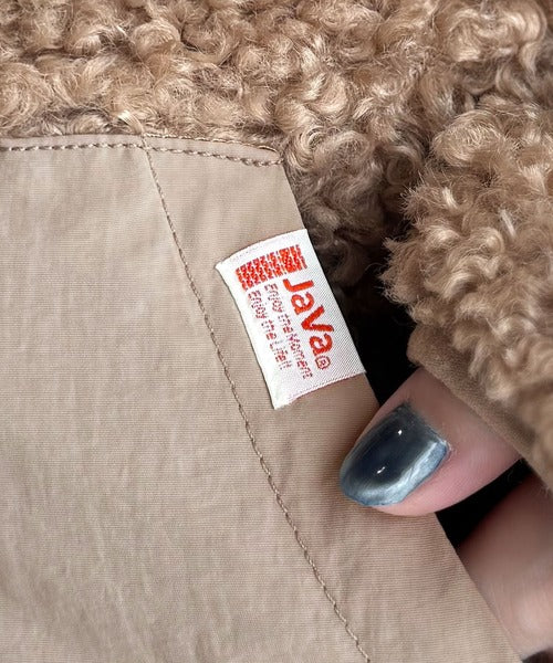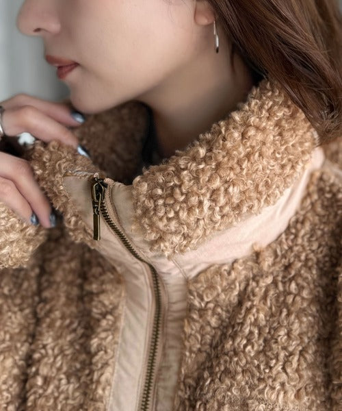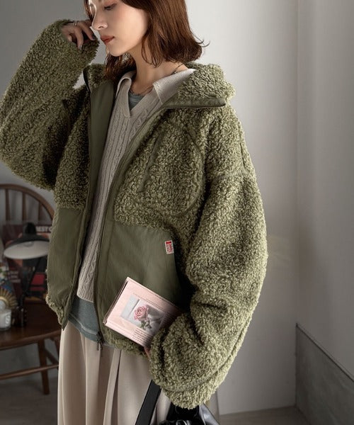 《JaVaジャバコラボ》ぬくぬく愛らしい◎プードルボア×ナイロン異素材切替フライトジャケット jv1265031