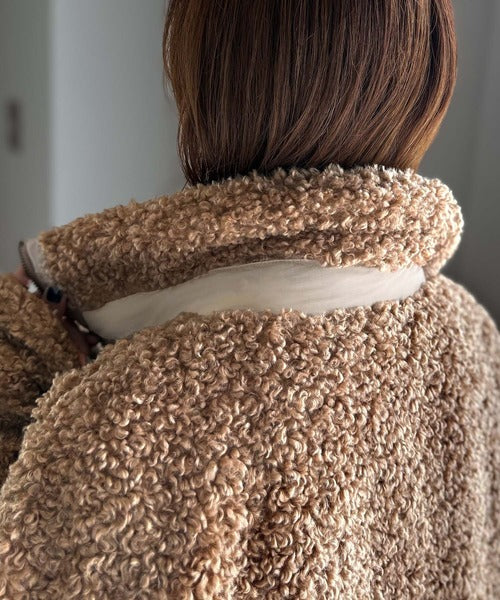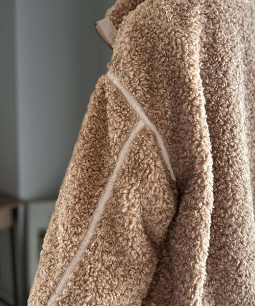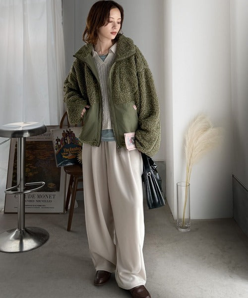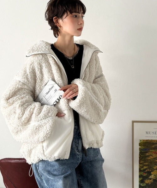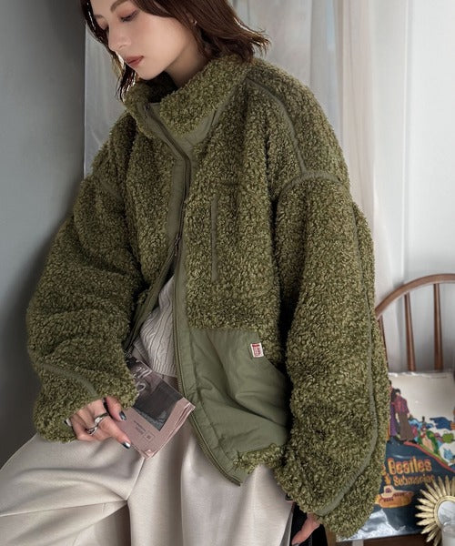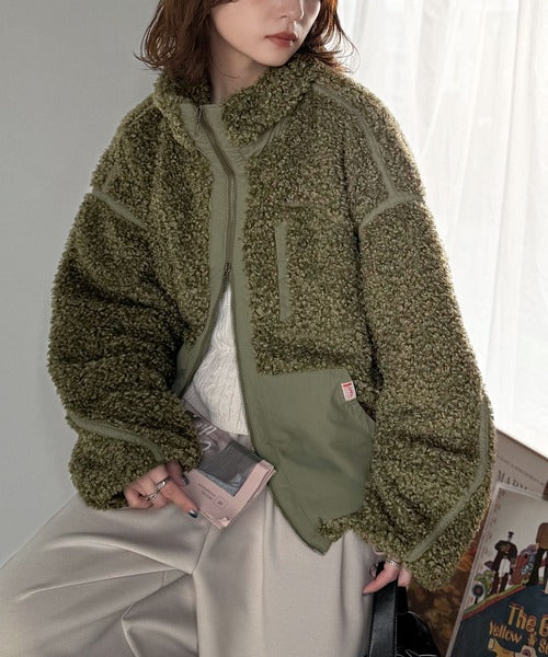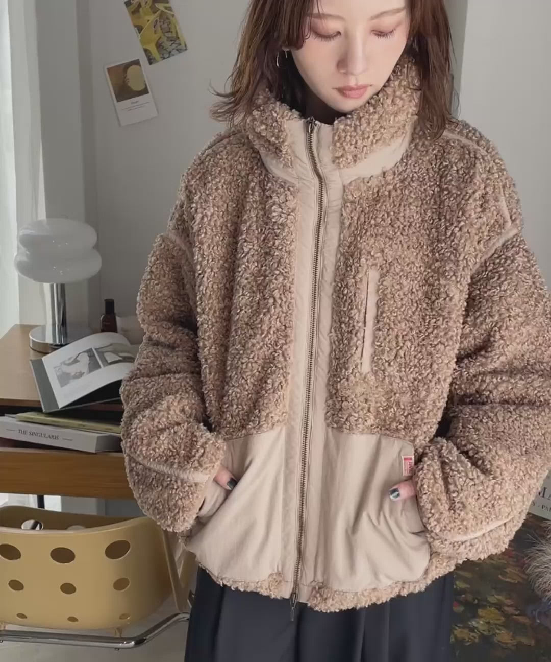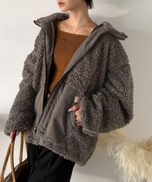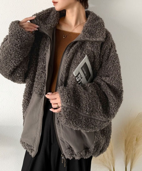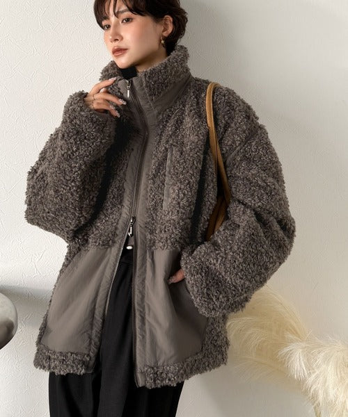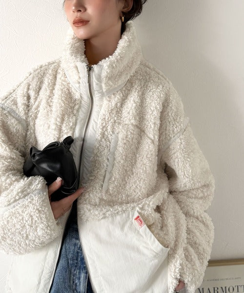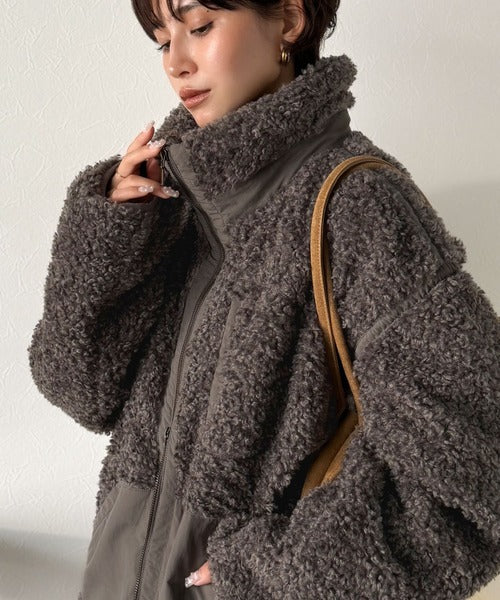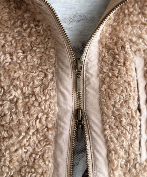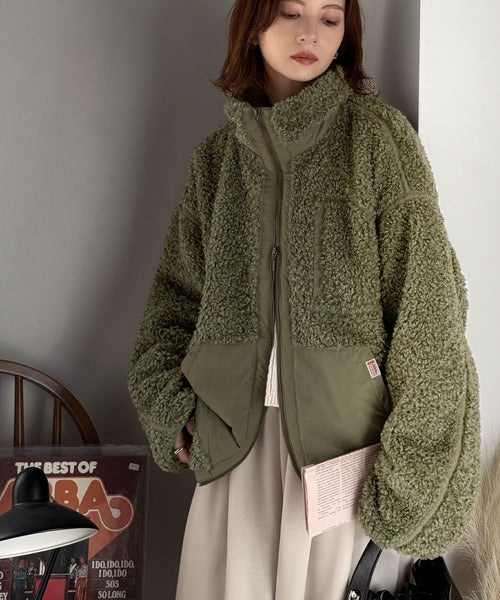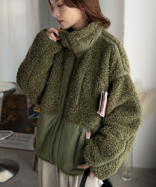 《JaVaジャバコラボ》ぬくぬく愛らしい◎プードルボア×ナイロン異素材切替フライトジャケット jv1265031