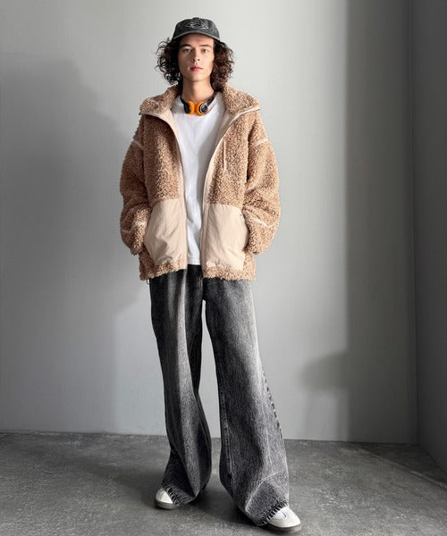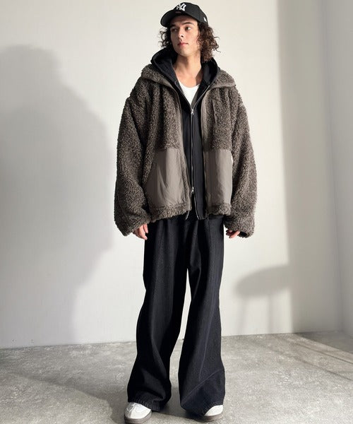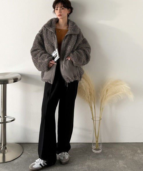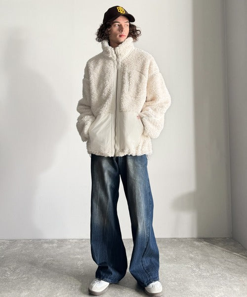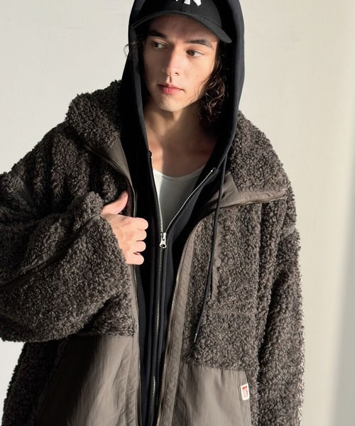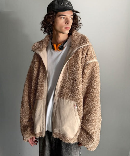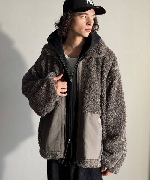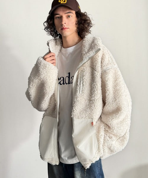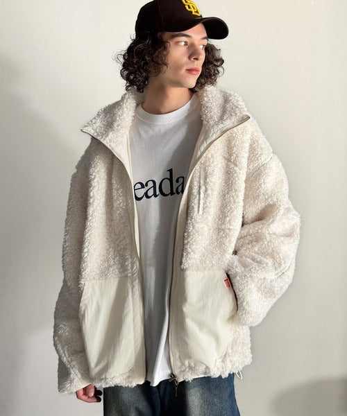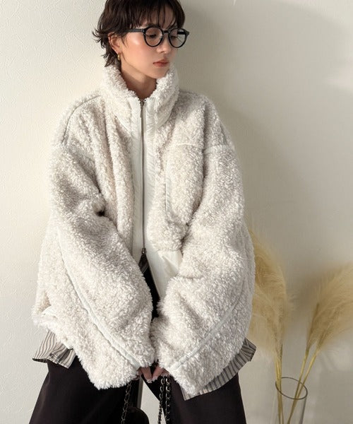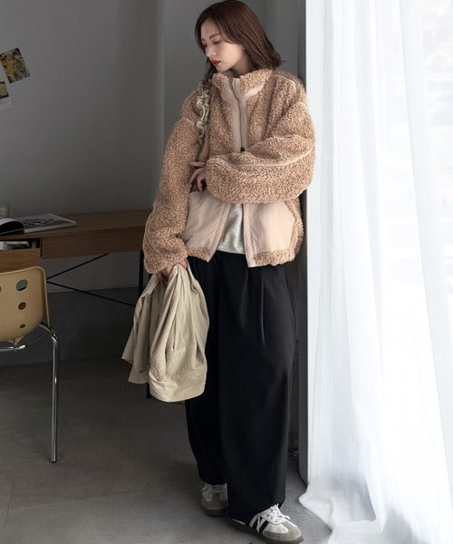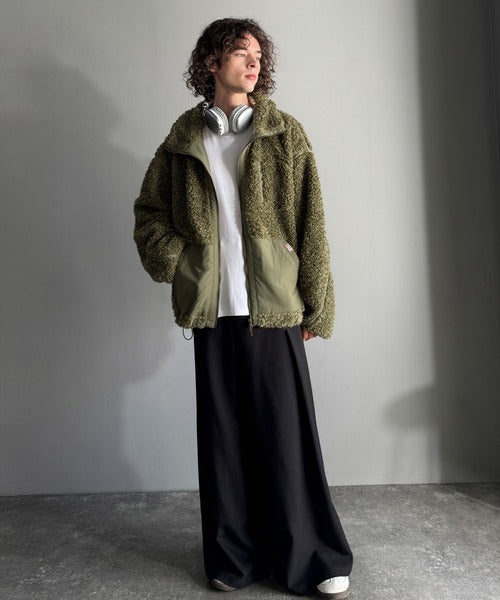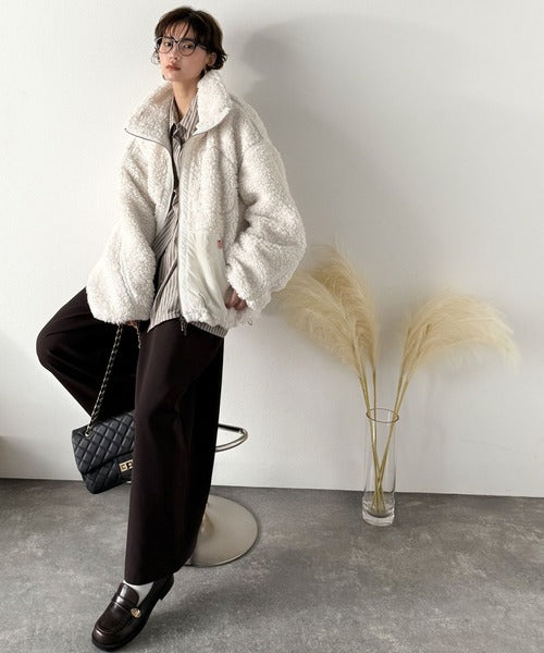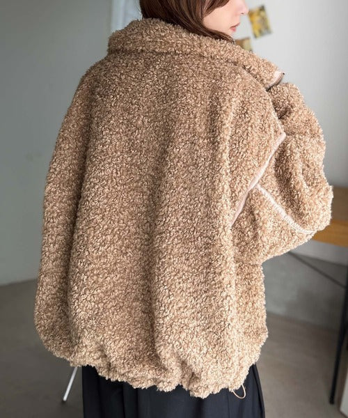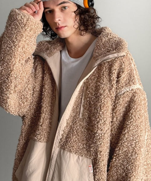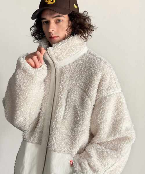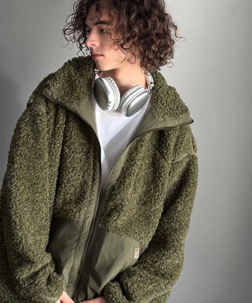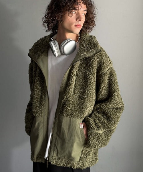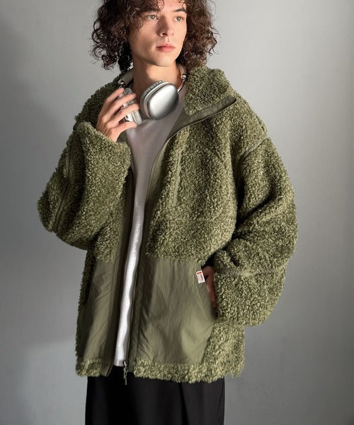 《JaVaジャバコラボ》ぬくぬく愛らしい◎プードルボア×ナイロン異素材切替フライトジャケット jv1265031
