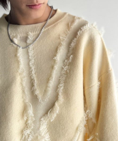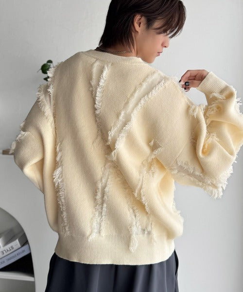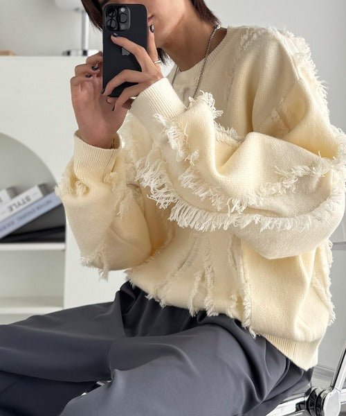 全体に施されたフリンジで、定番のニットが動きのある1枚に。