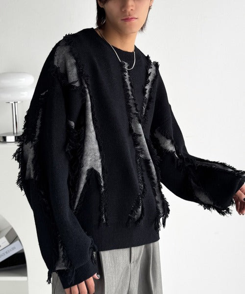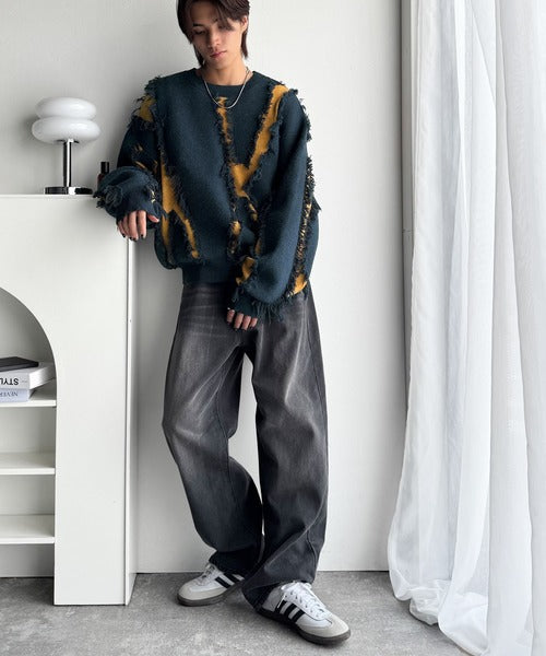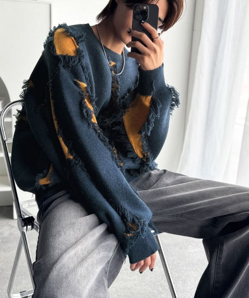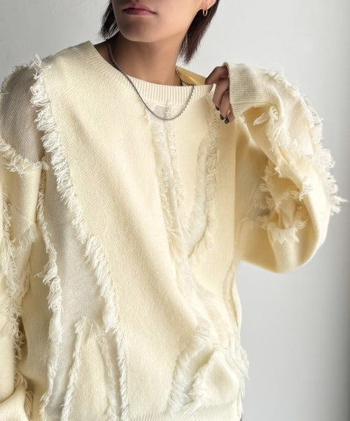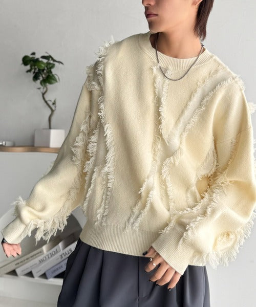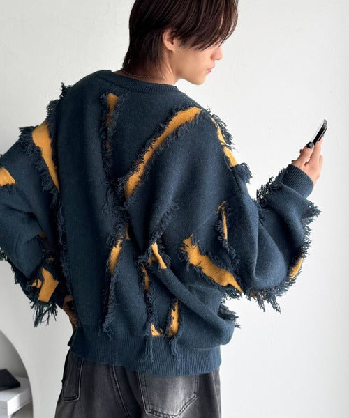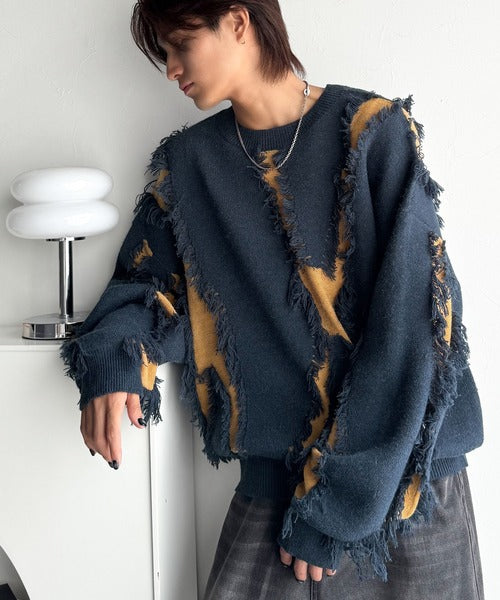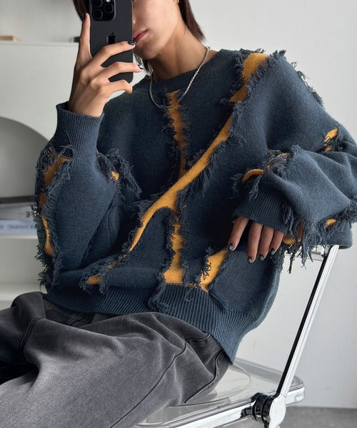 【classical origin】「着るだけで、印象派」。フリンジデザイン配色オーバーサイズニット(長袖)/Fringe design oversized long sleeve knit ao1260444
