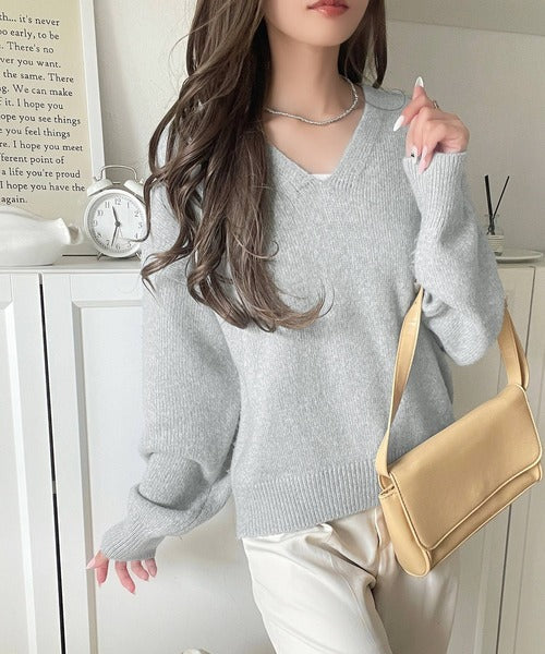 ふわっと軽やか◎メランジ調Vネックニットプルオーバー(長袖) ce1020269