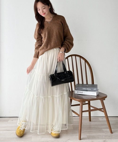 スカートにゆるっとインすれば、大人フェミニンなスタイルにもマッチします。