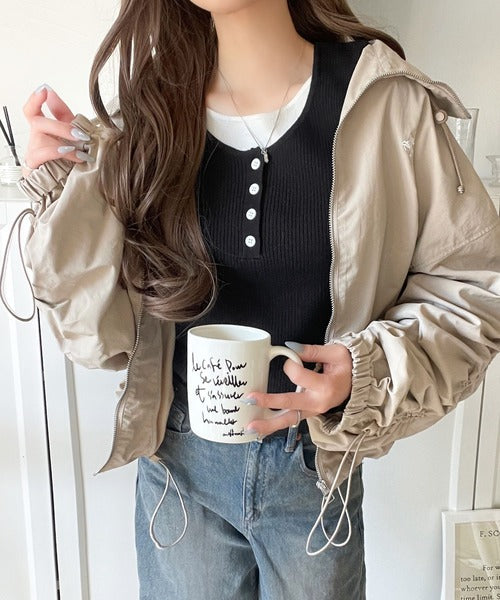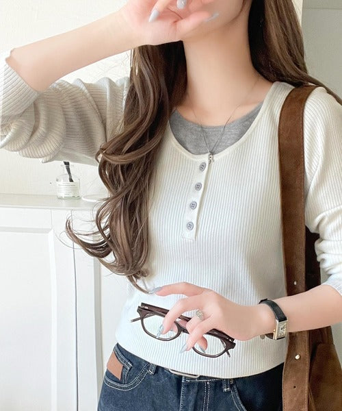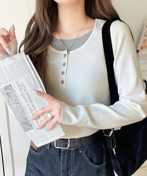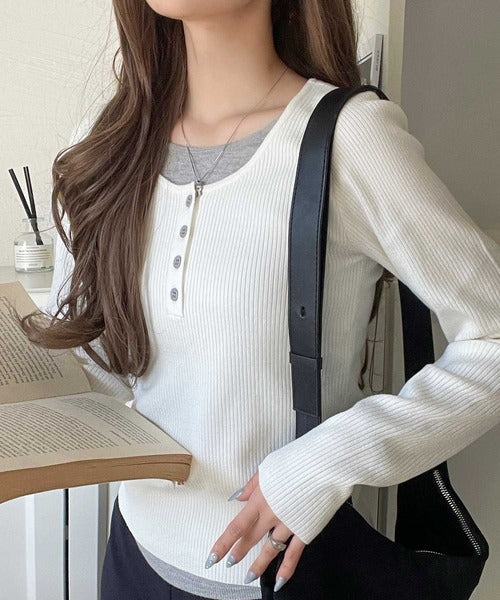 レイヤード風のフェイクデザインが、コーディネートに奥行きを与え、スタイリングの幅を広げてくれます。