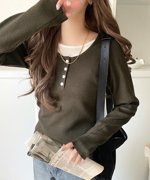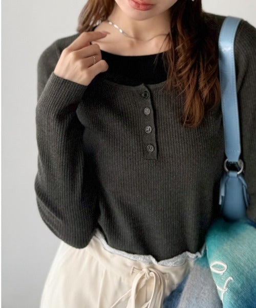 ヘンリーフェイクレイヤードプルオーバーは、シンプルながらも洗練されたデザインが魅力の一枚♪