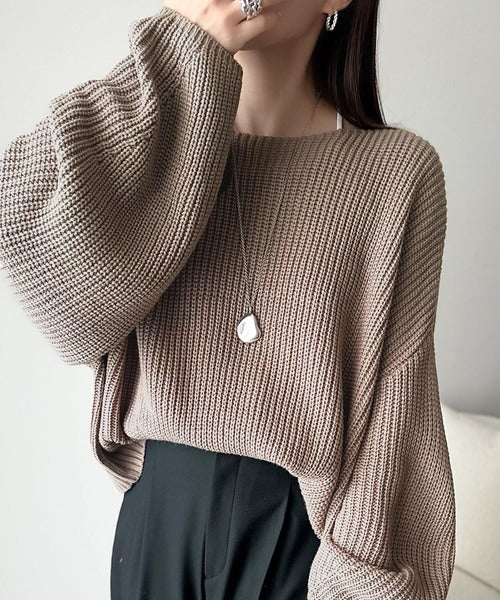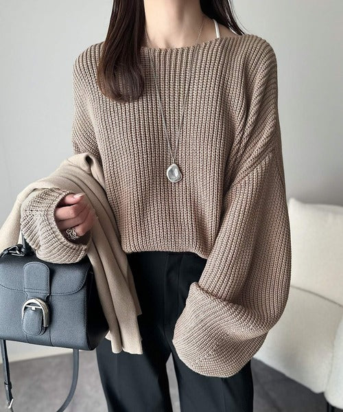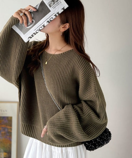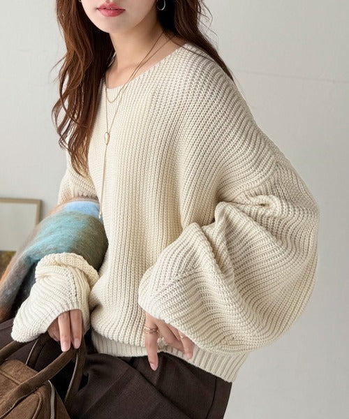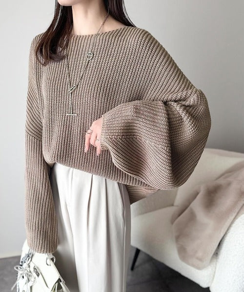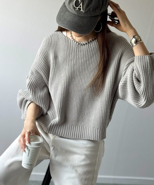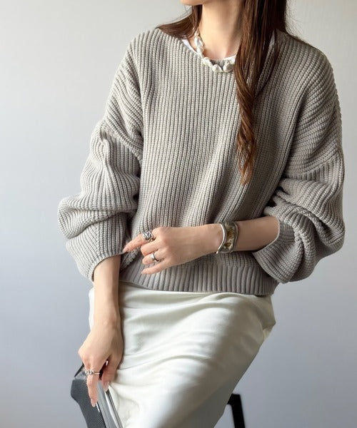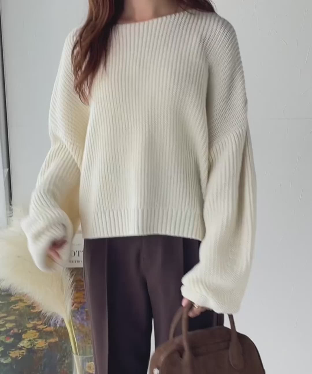 立体感のあるコクーンスリーブが印象的な畦編みニット。