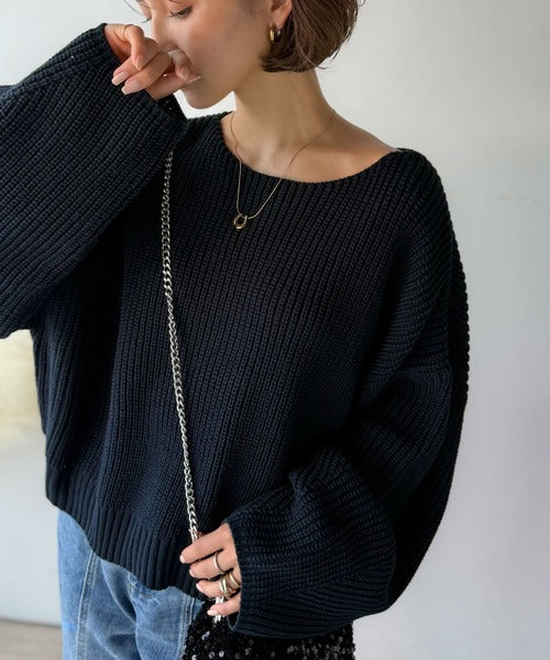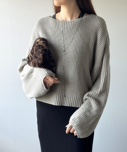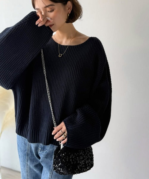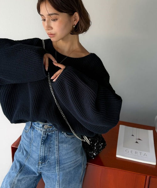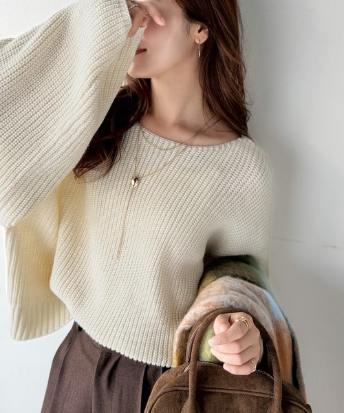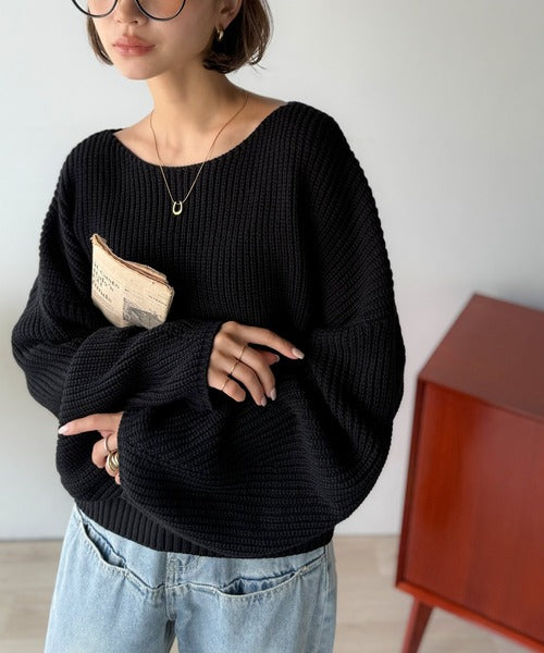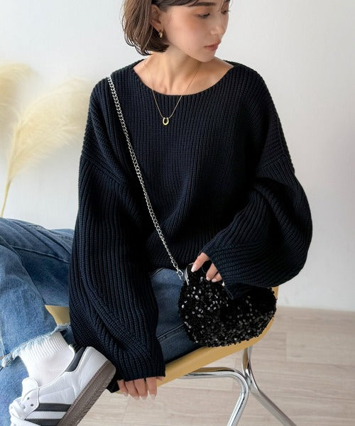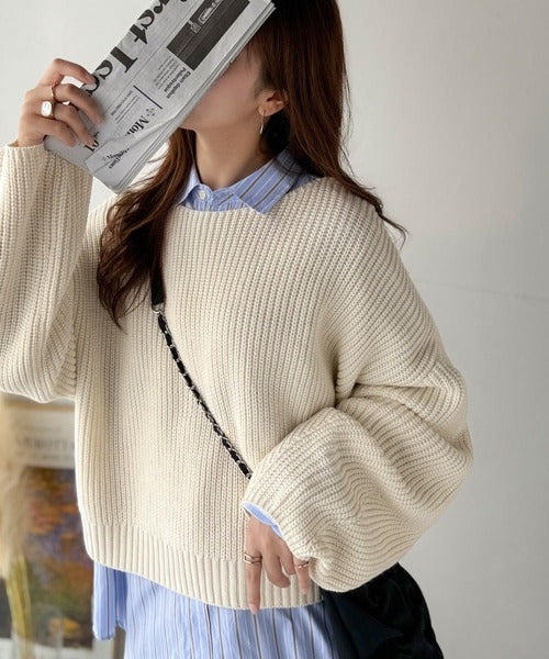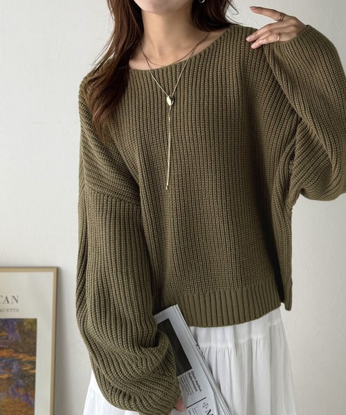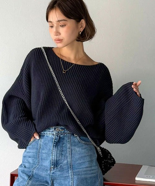 立体感のあるコクーンスリーブが印象的な畦編みニット。