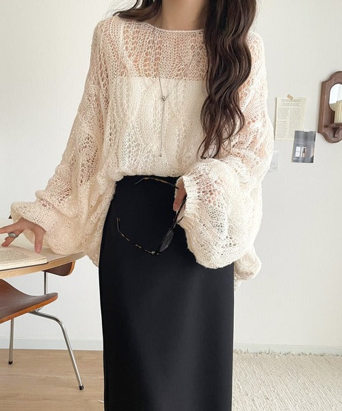 ゆるっと抜け感漂う!透かし編みケーブルオーバーサイズニット(長袖) ce1050320
