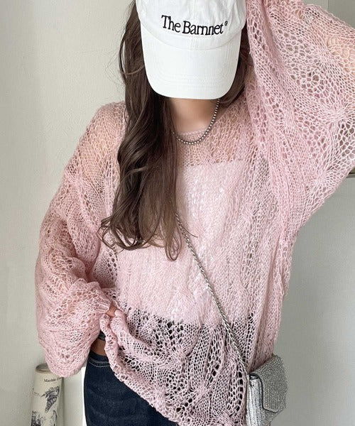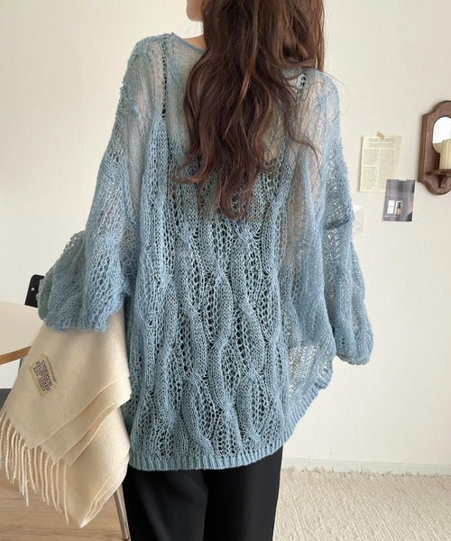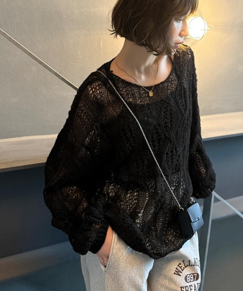透かし編みのケーブルデザインが特徴のオーバーサイズニット。