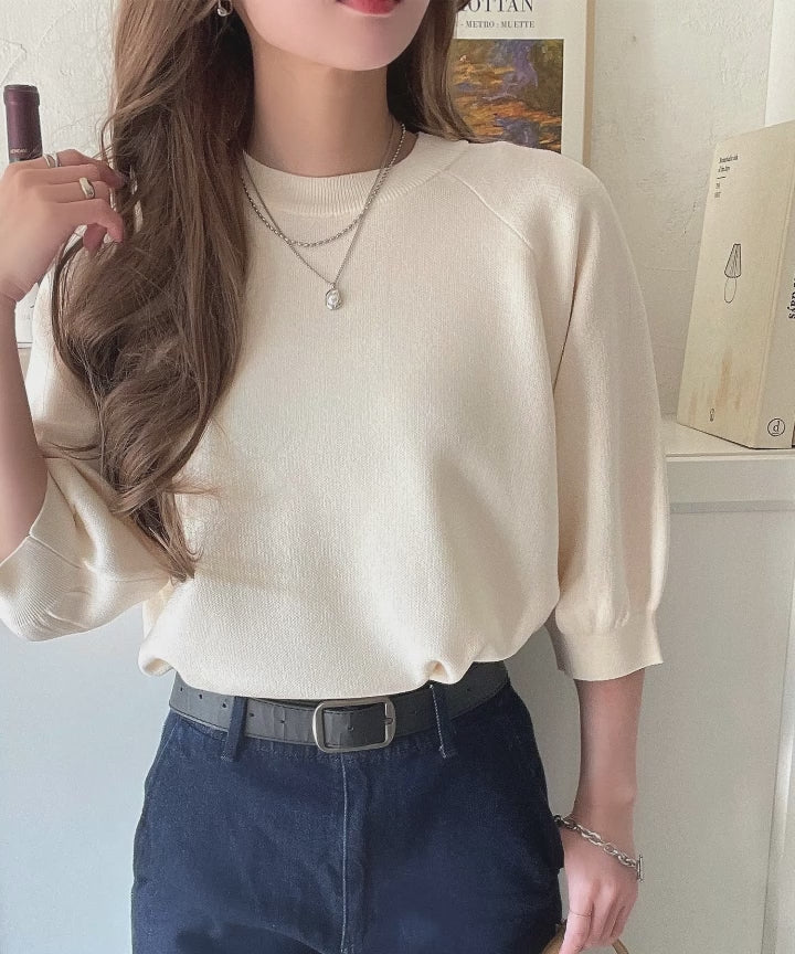 抜け感のある洗練デザイン。ラグランコンパクトスウェット風ニット(半袖) ce1260415