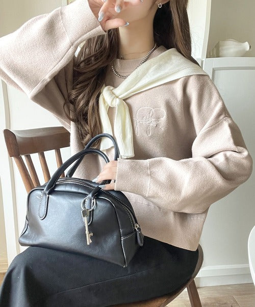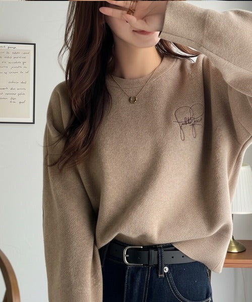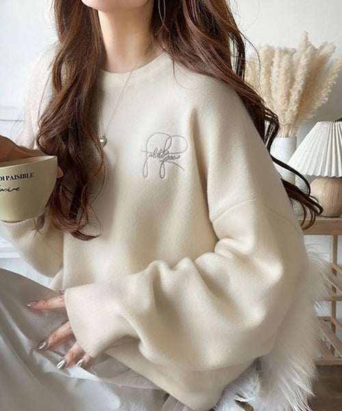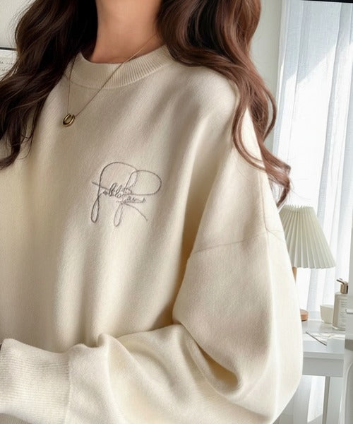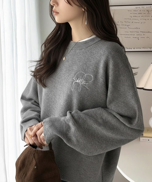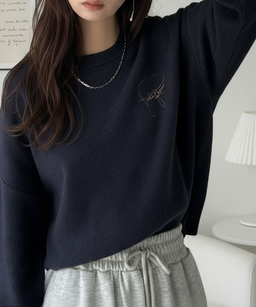 スウェットライクで”魅せる”大人のリラクシーな1枚。胸元サインロゴ刺繍入りニット ce1260482