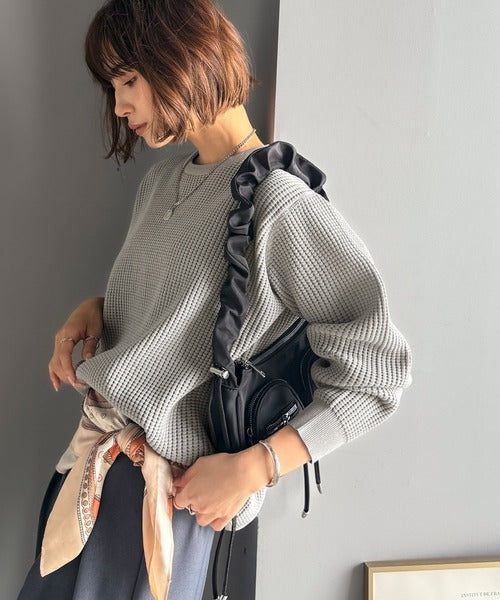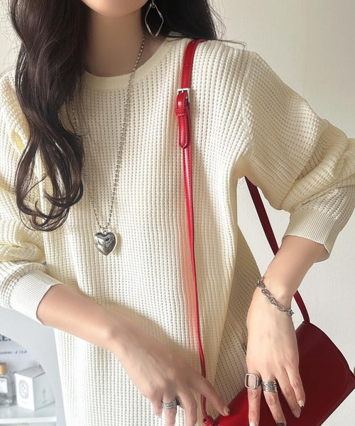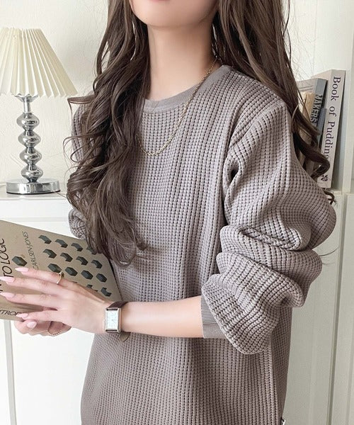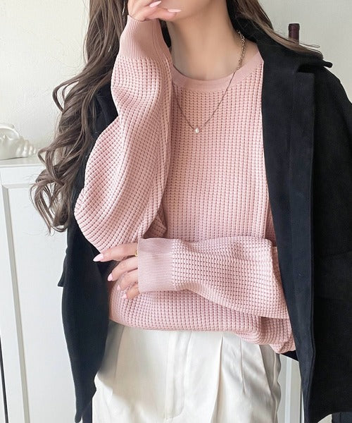 表情のあるワッフル編みが着こなしのアクセントに♪