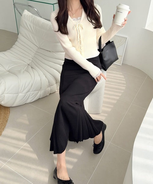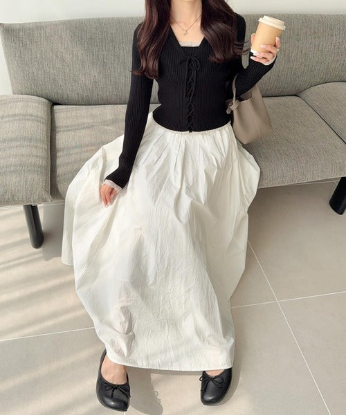 トレンド感とフェミニンさを兼ね備えたリブニットトップス。
