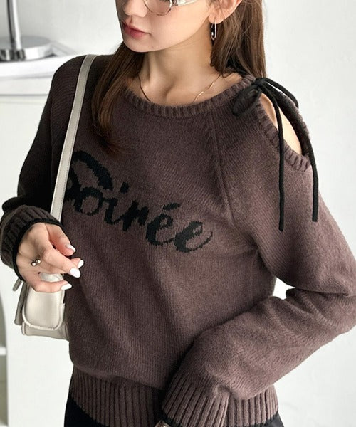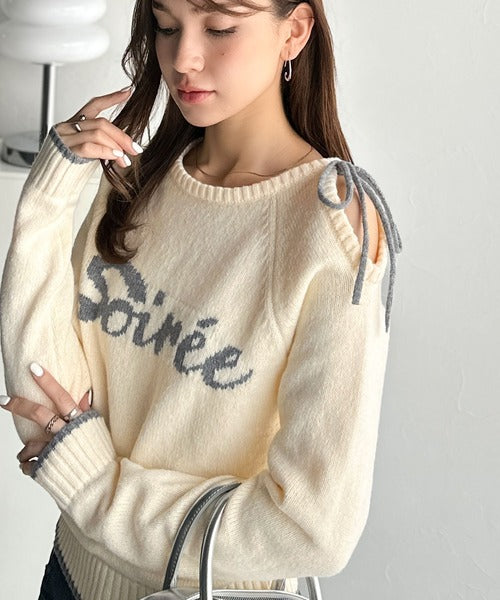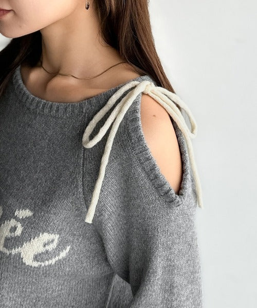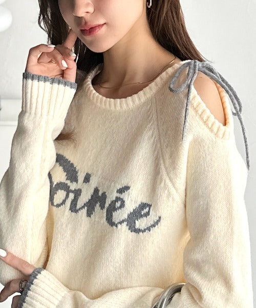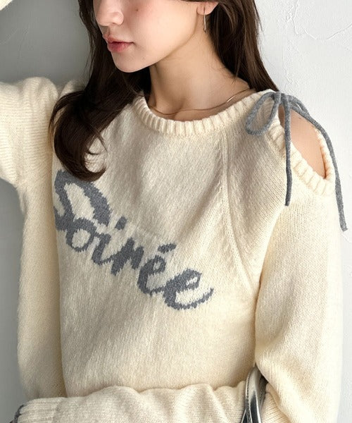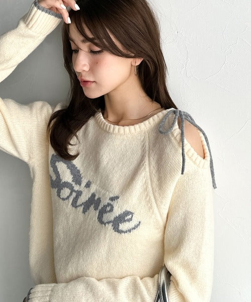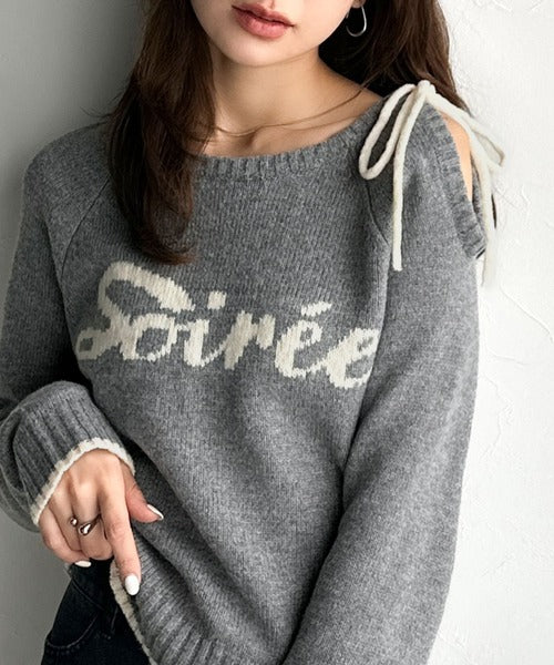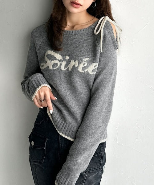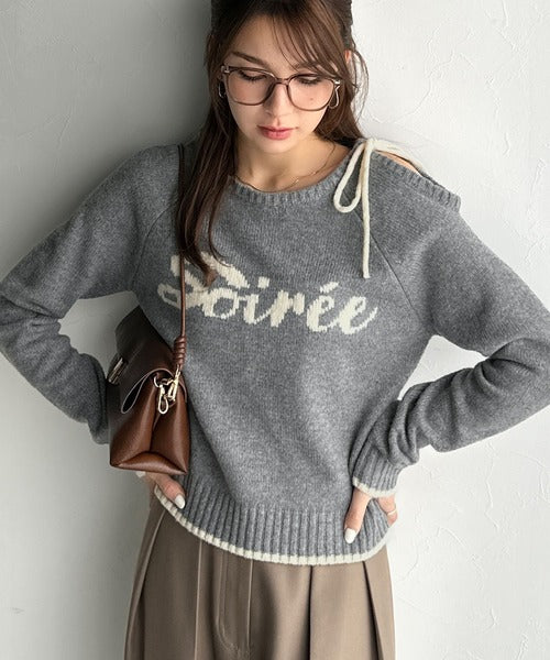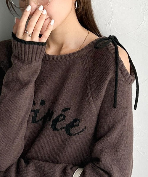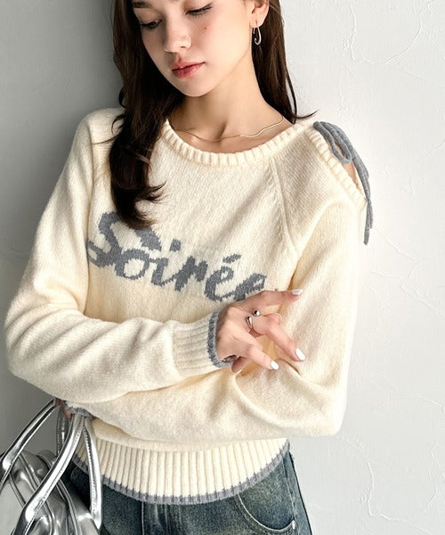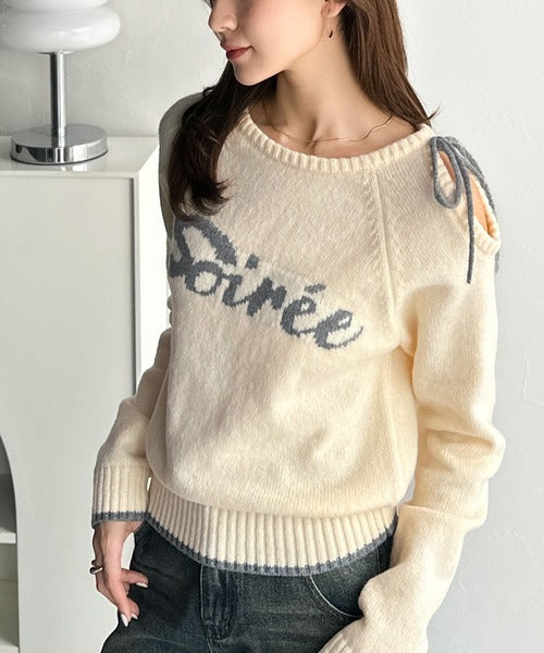 【mily bilet】大人ガーリースタイル♪ロゴ入りワンオフショルリボンニットプルオーバー(長袖) mi1329060