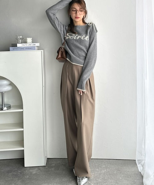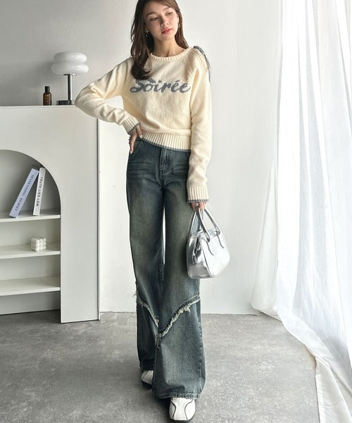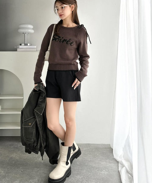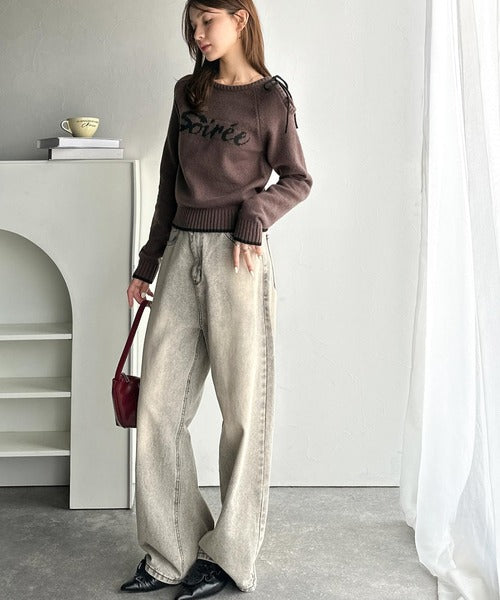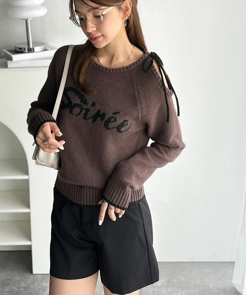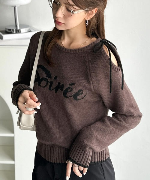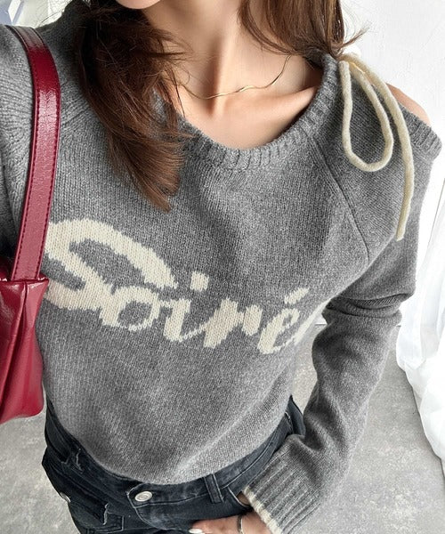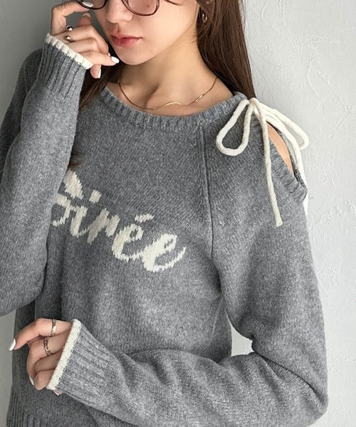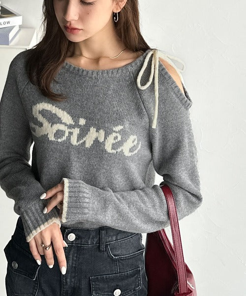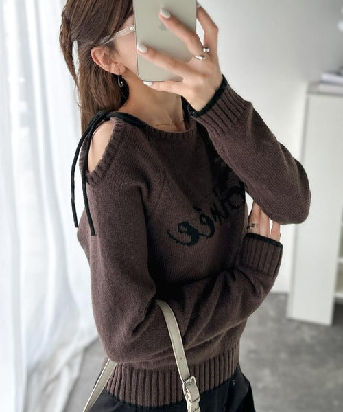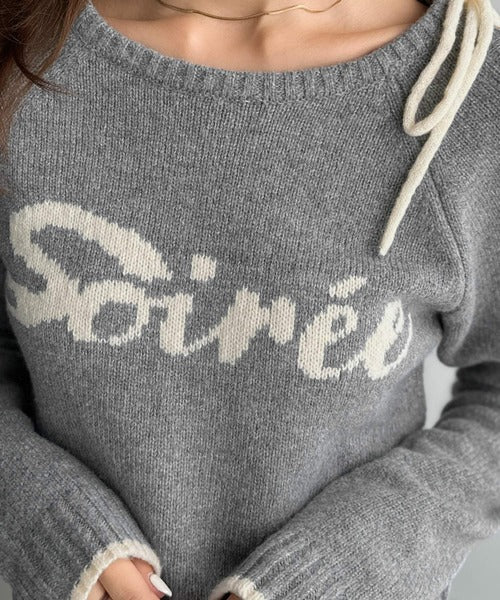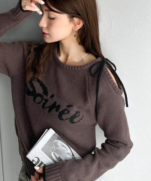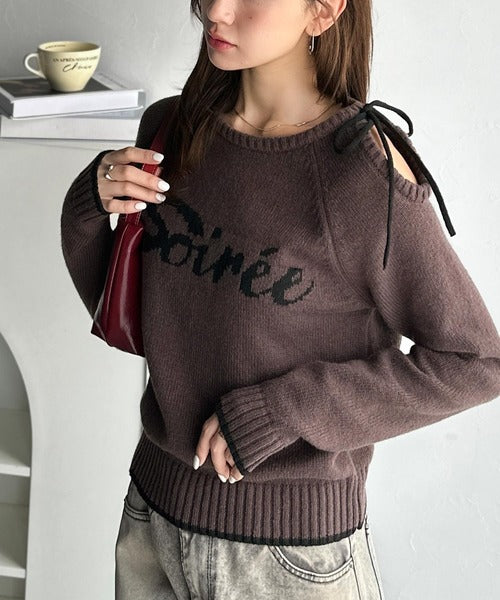 【mily bilet】大人ガーリースタイル♪ロゴ入りワンオフショルリボンニットプルオーバー(長袖) mi1329060