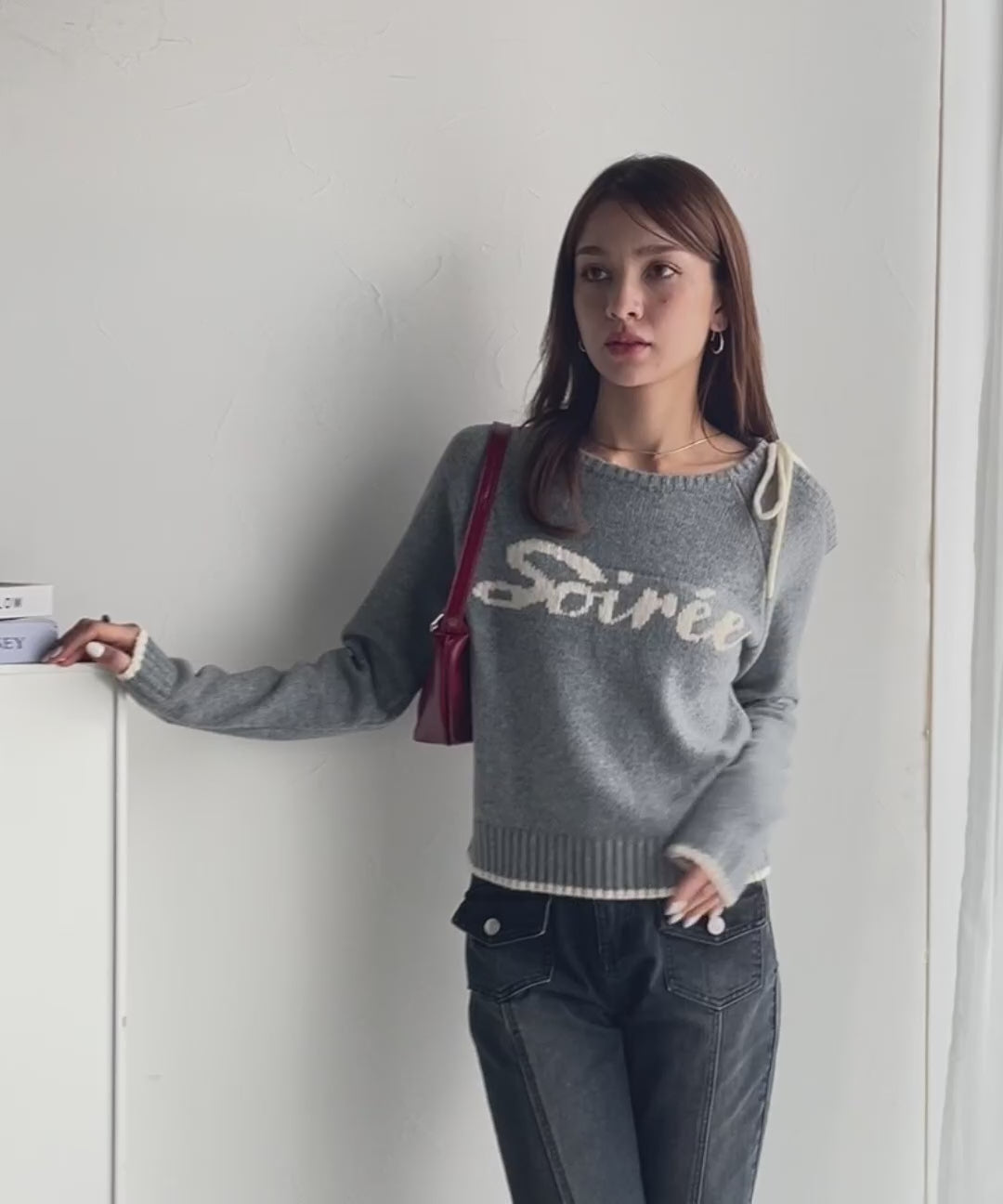 アシンメトリーなワンショルダーデザインに、リボンをあしらった華やかなプルオーバー。