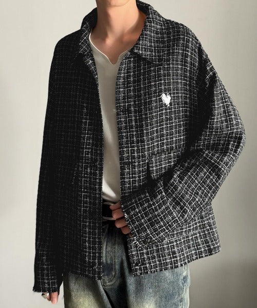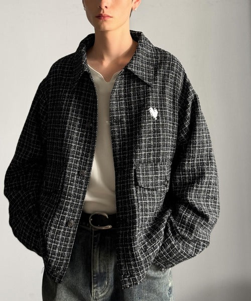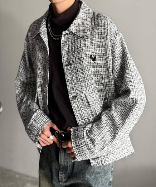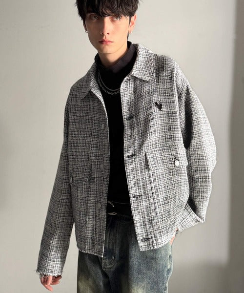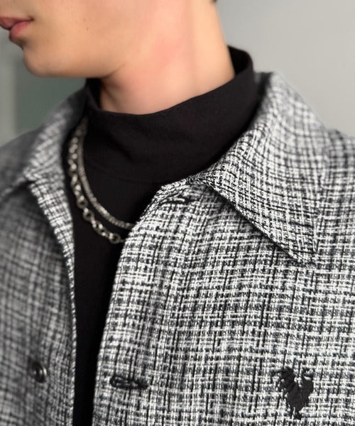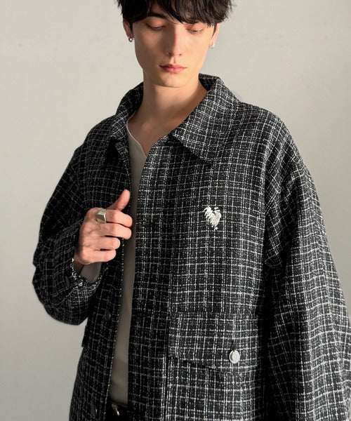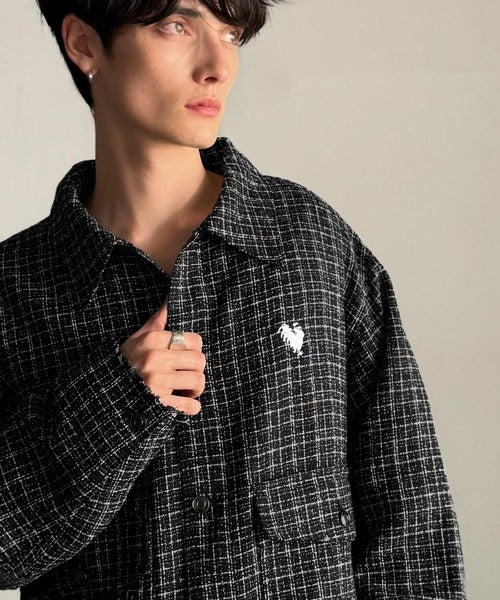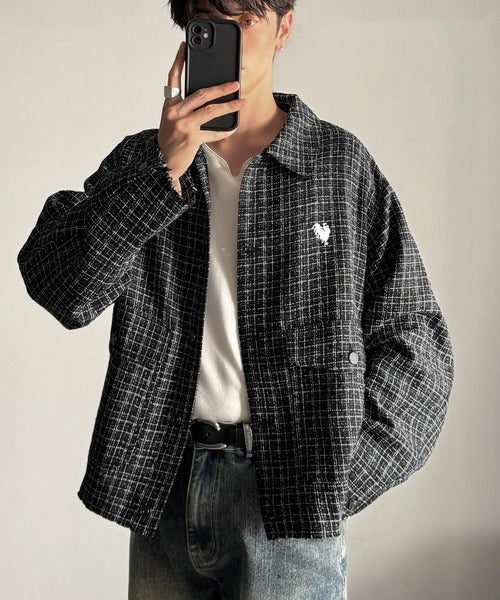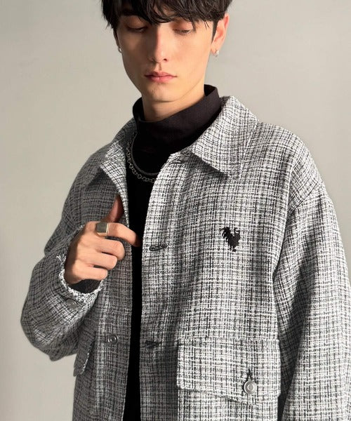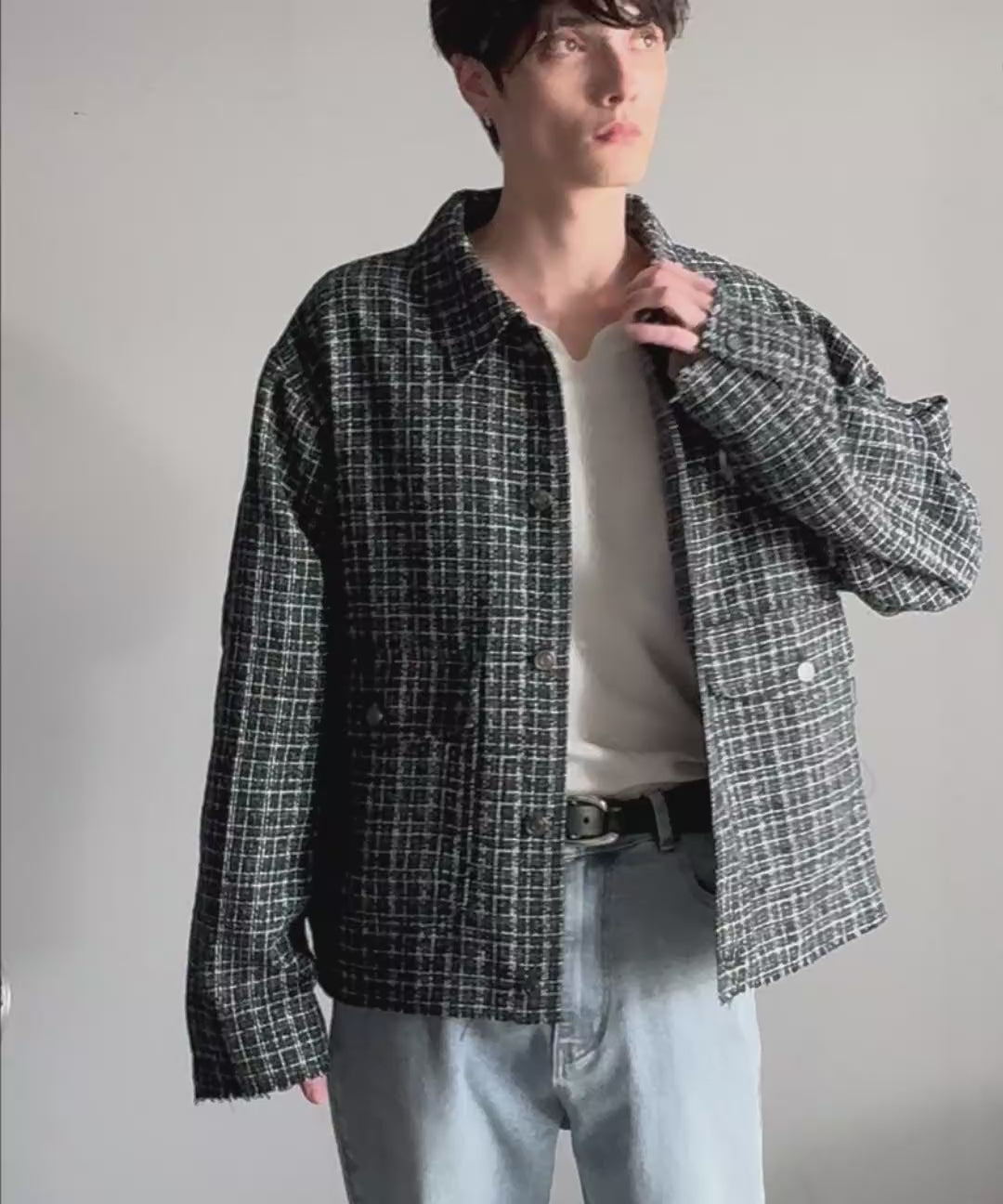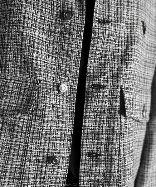 Gジャン型のデザインをベースに、奥行きのあるツイード素材を使用して上品さをプラスした