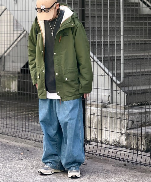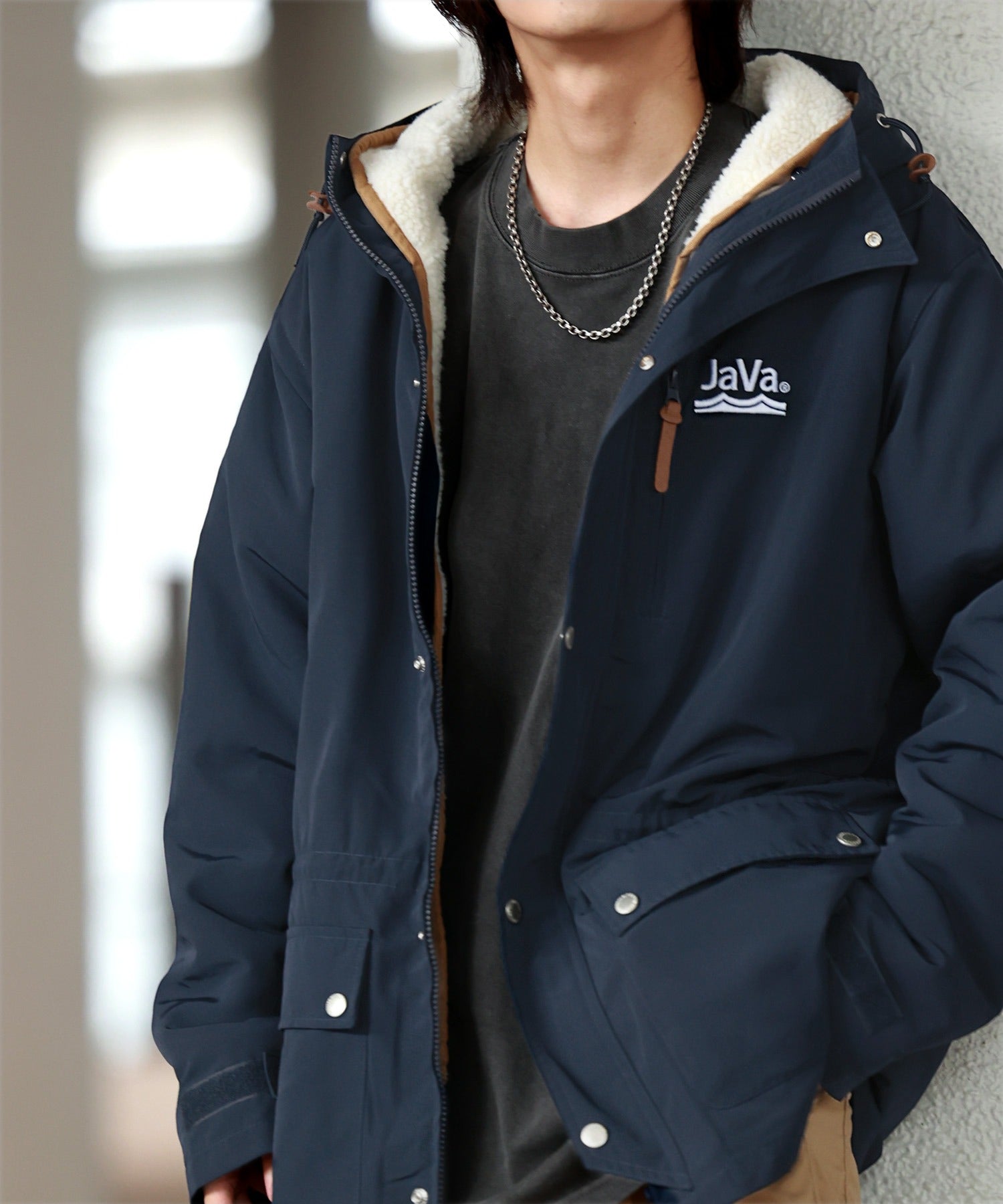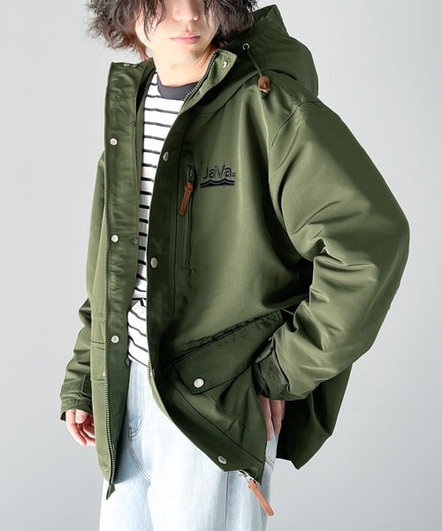 【family+】《JaVa ジャバコラボ》3WAYミドル丈無地マウンテンパーカー(ライナー取外し可) mclf002