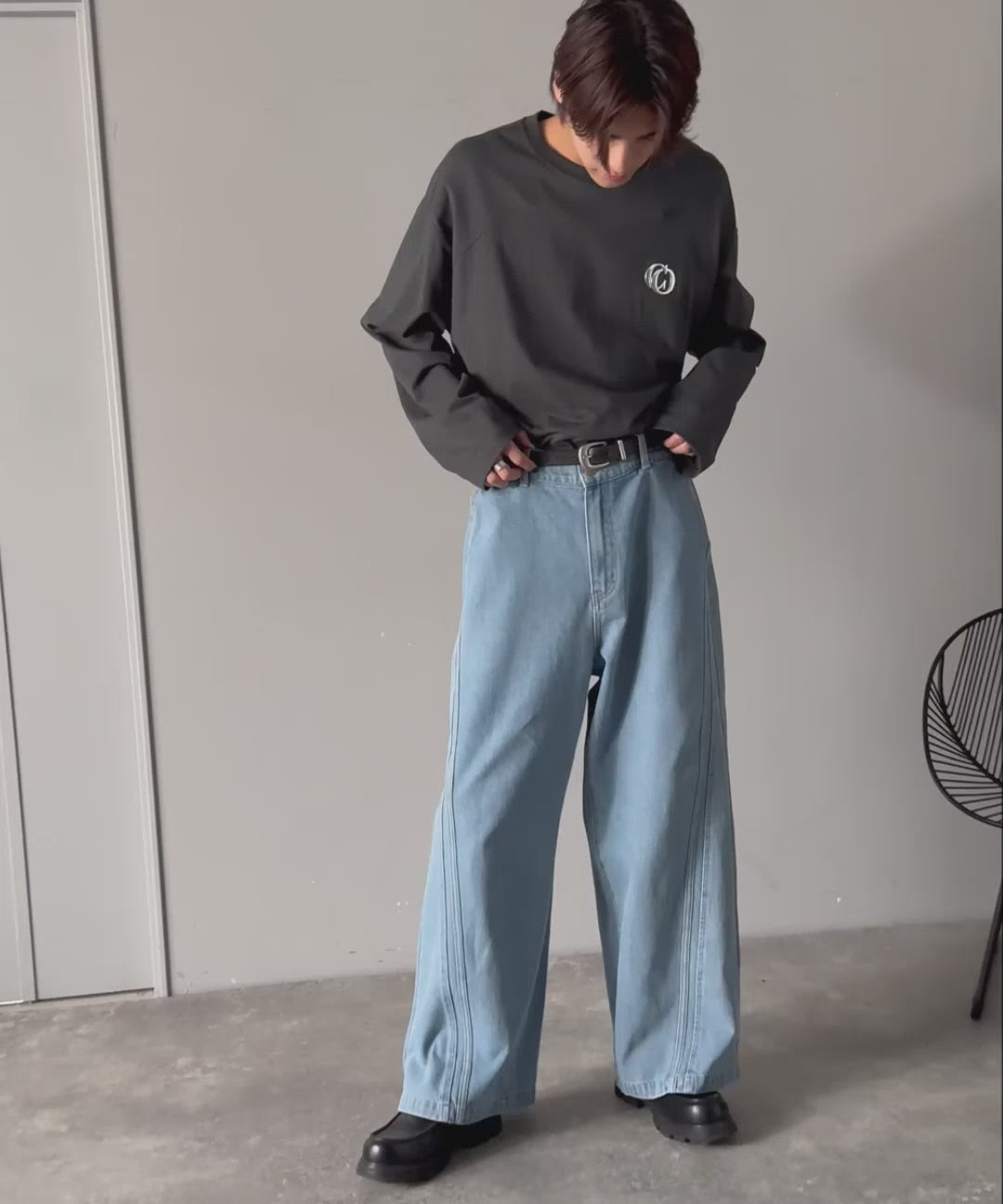 【Classical Origin】「二度見される。」サイドダブルカーブラインデニムパンツ/Side Double Curve Line Denim Pants co0900002
