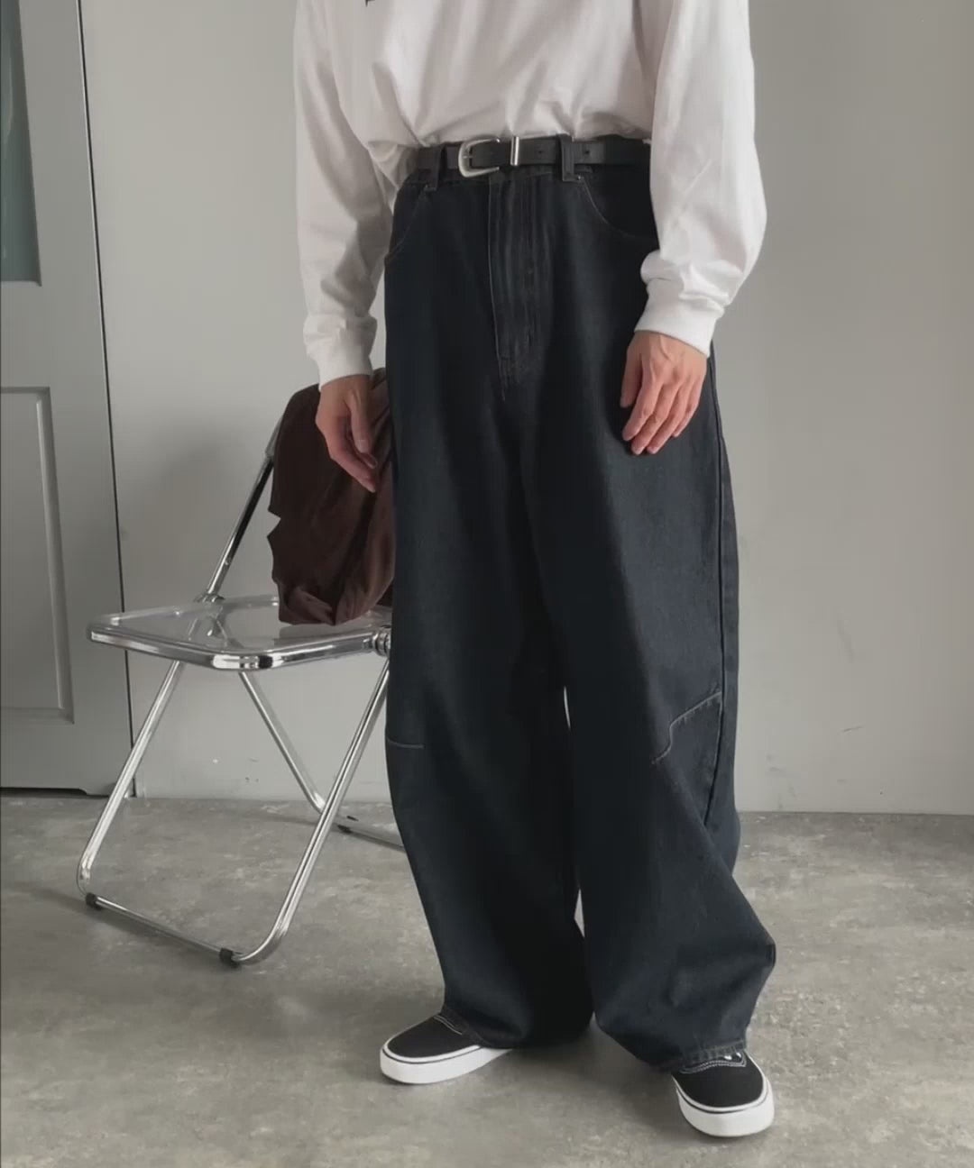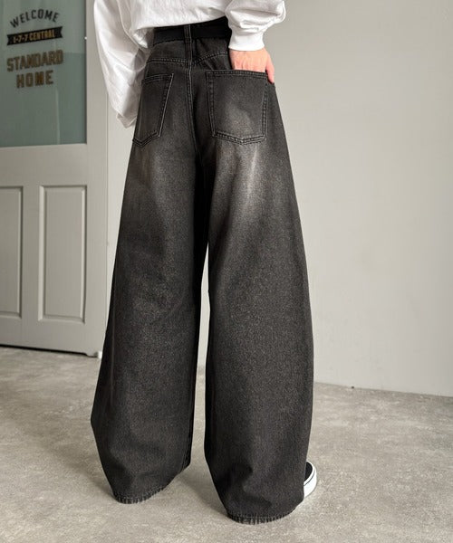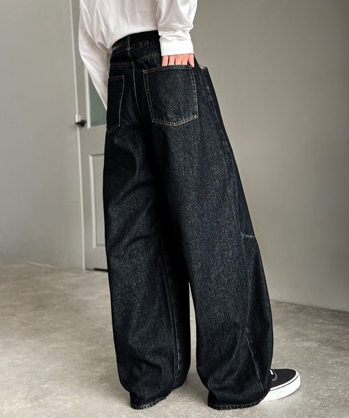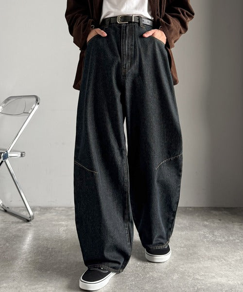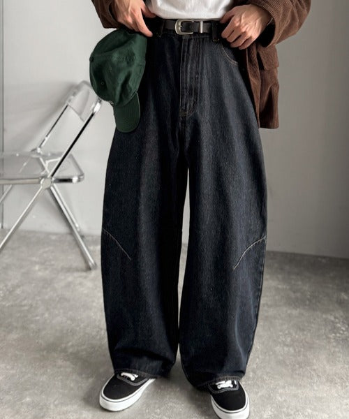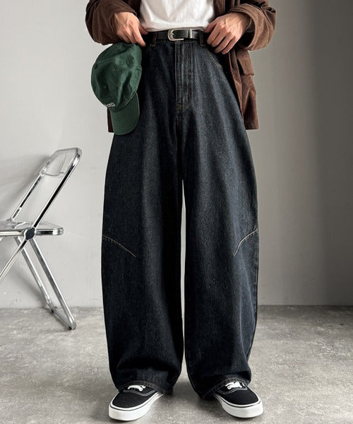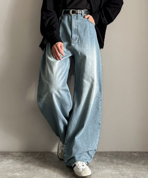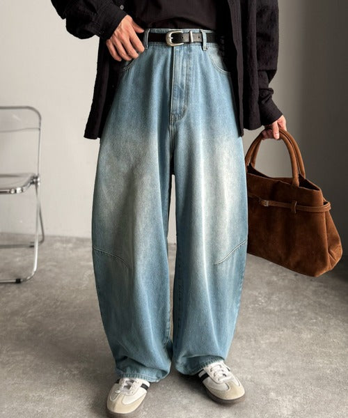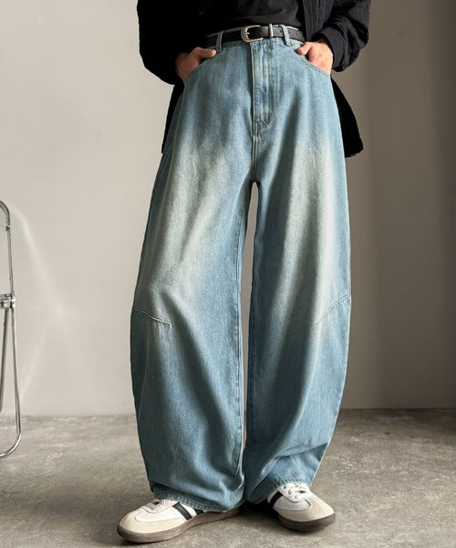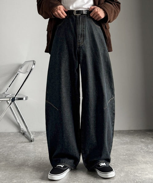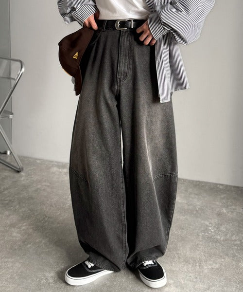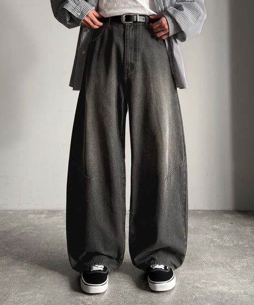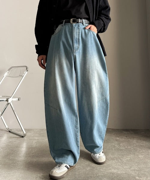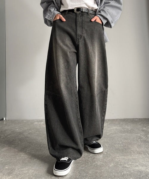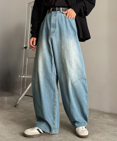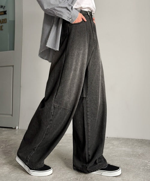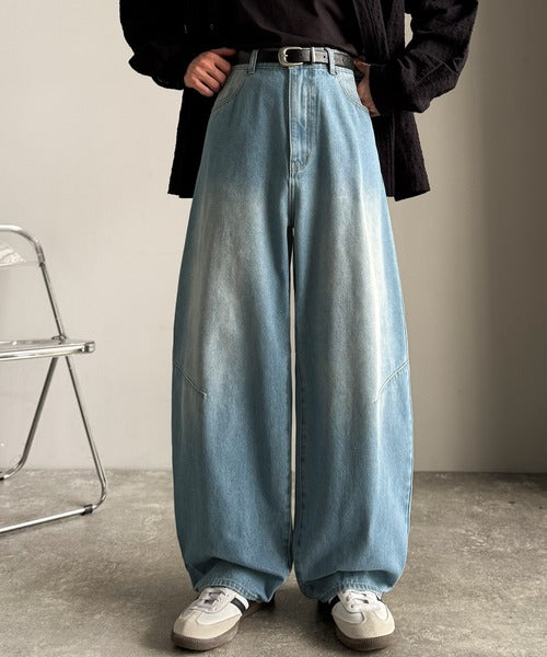 「Blasted Curve Silhouette Barrel-Leg Denim Pants/
