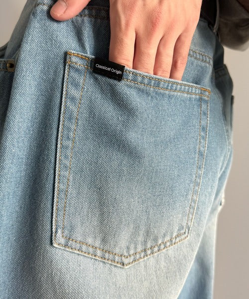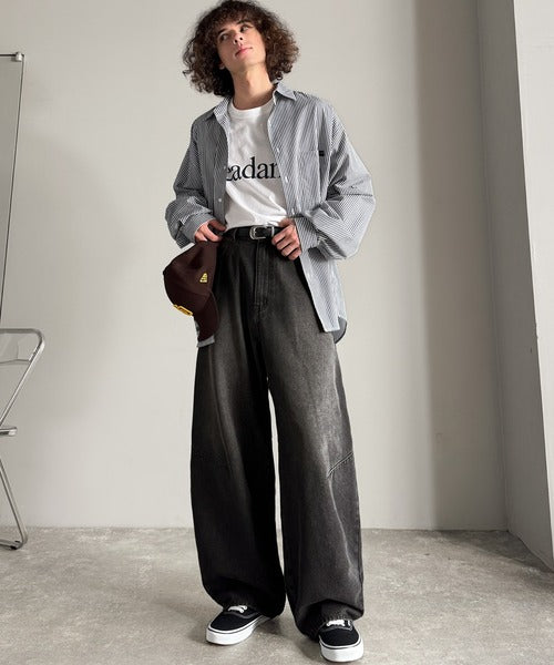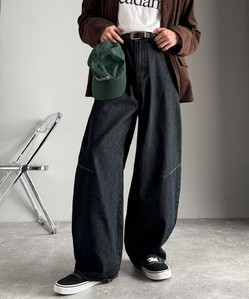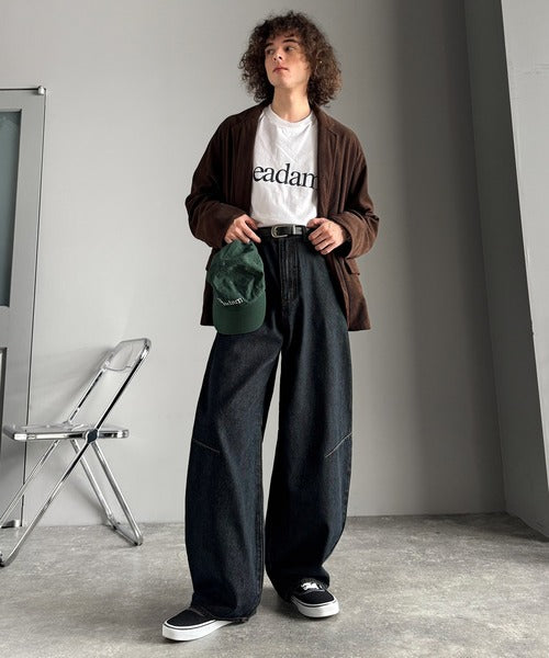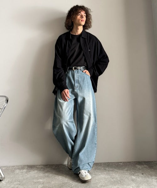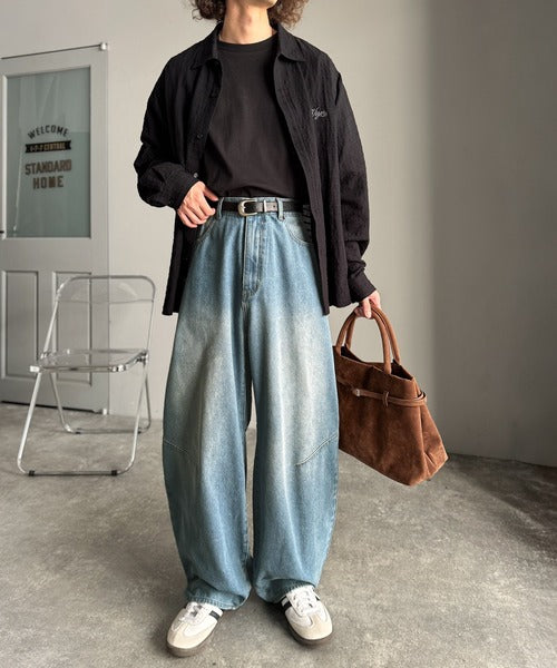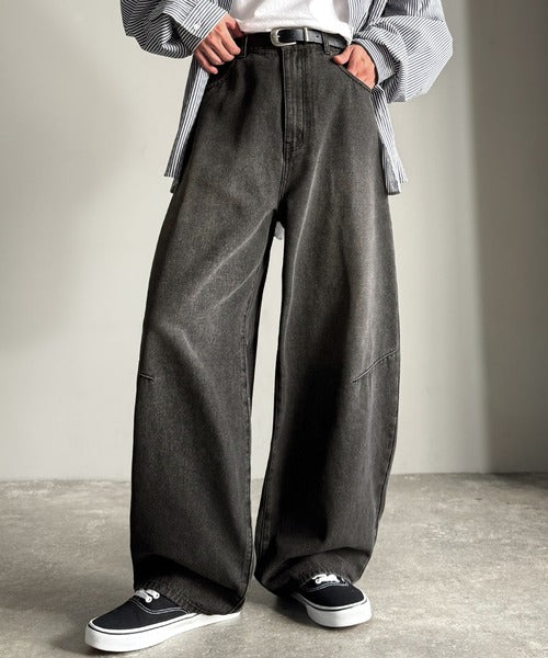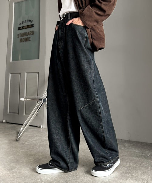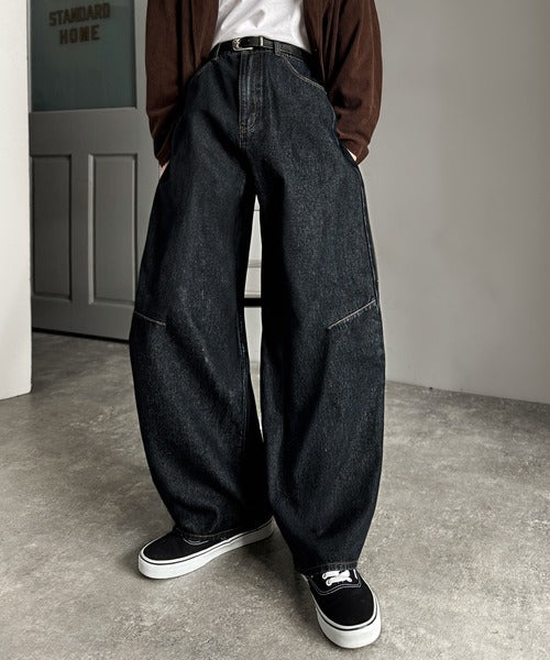 【Classical Origin】「シルエットで語る。」ブラスト加工カーブシルエットバレルレッグデニムパンツ/Blasted Curve Silhouette Barrel-Leg Denim Pants co0900007