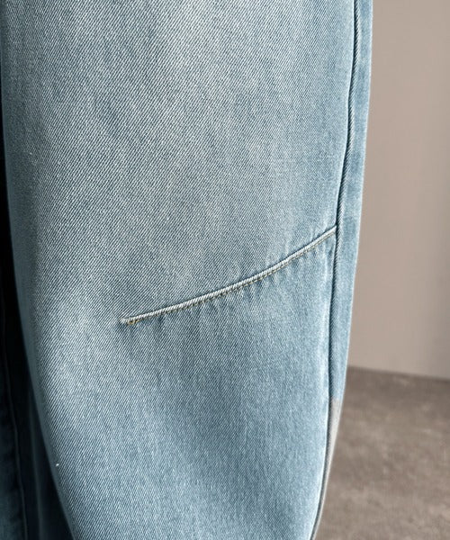 ブラスト加工カーブシルエットバレルレッグデニムパンツ」