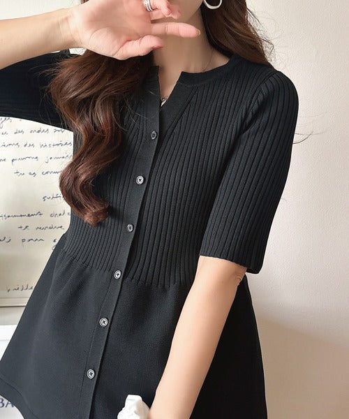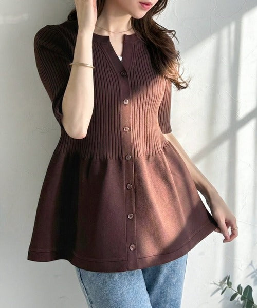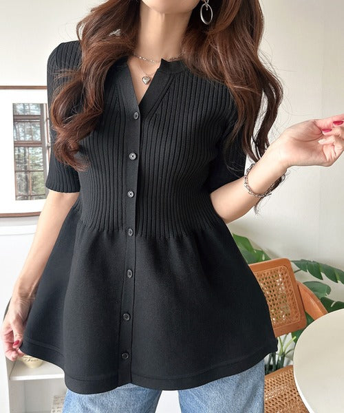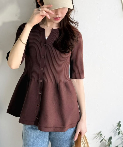 ふわりと映えて、優雅に広がる。リブ切り替えペプラムトップス(半袖) ce1050372
