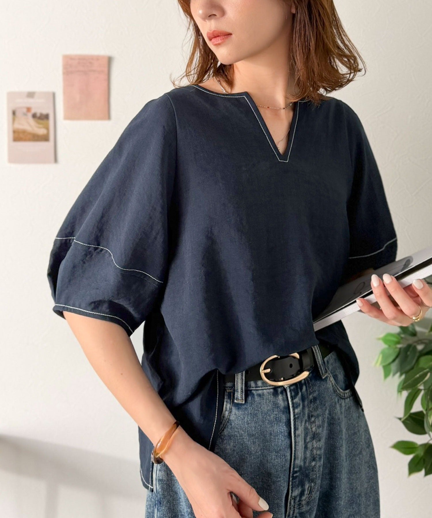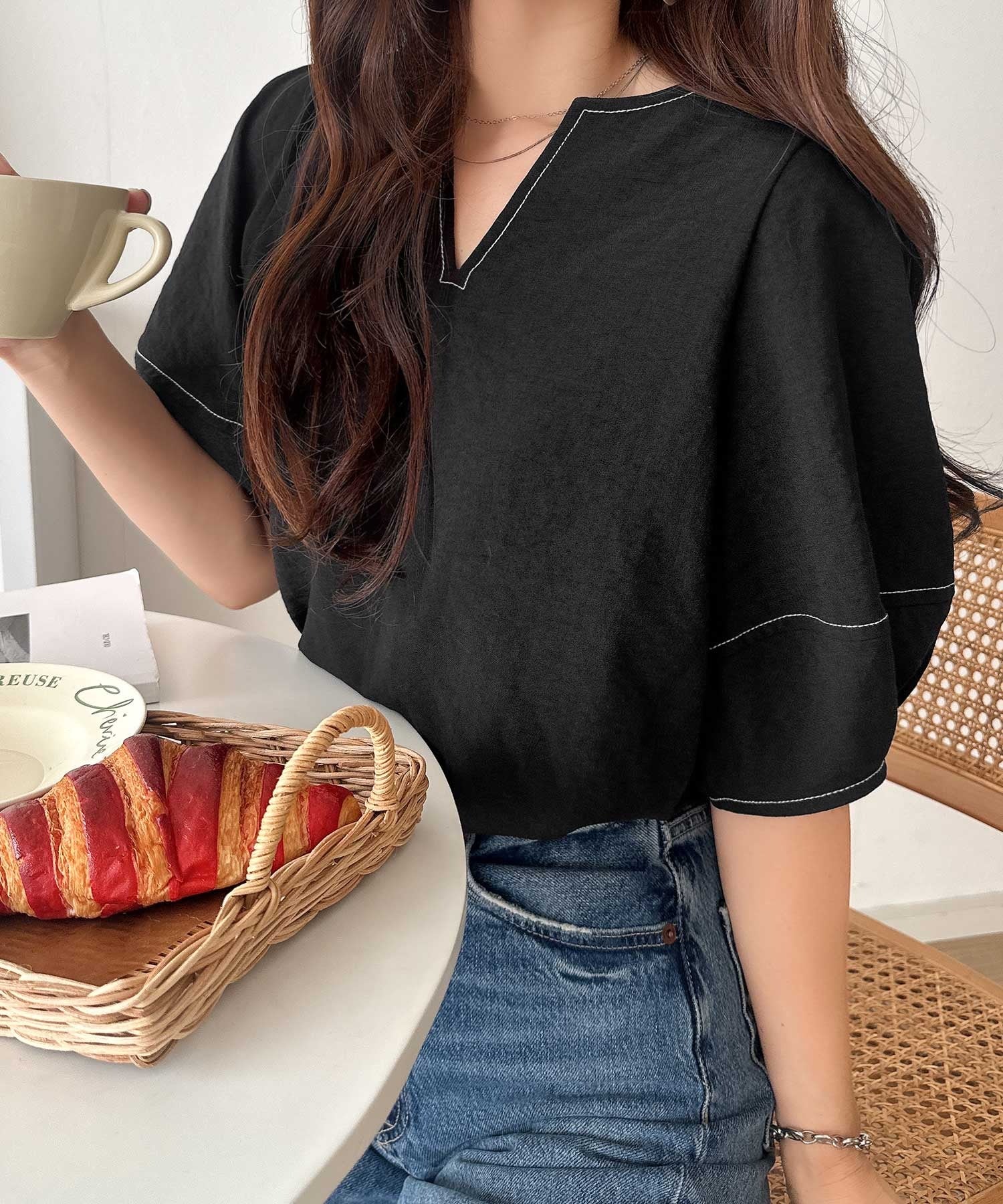 一枚でスタイリングが完成する万能ブラウスです。