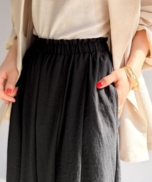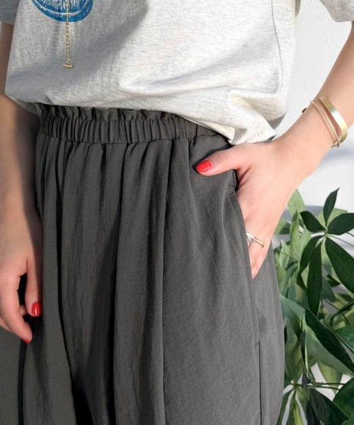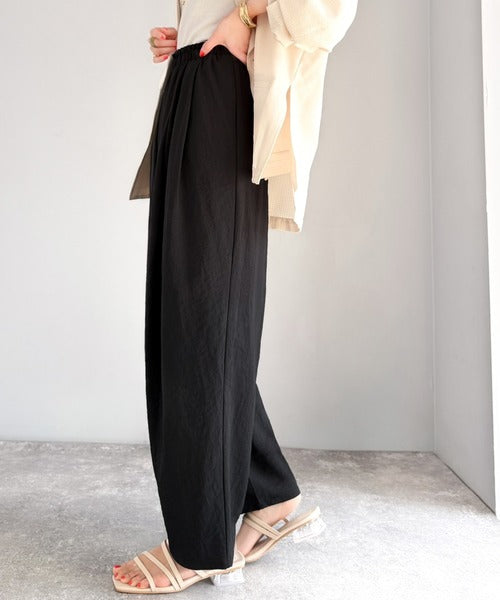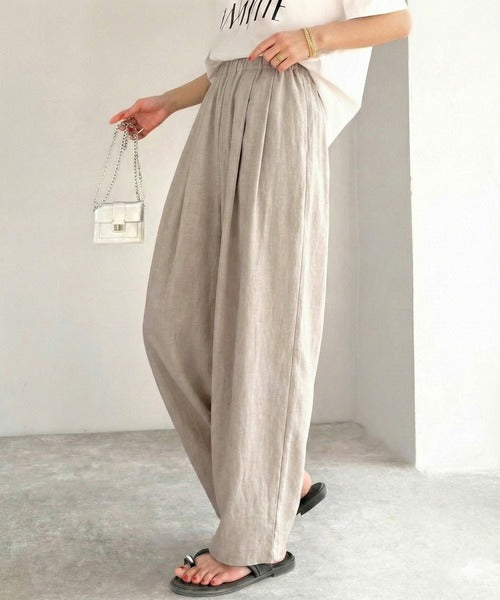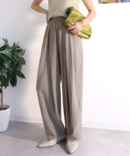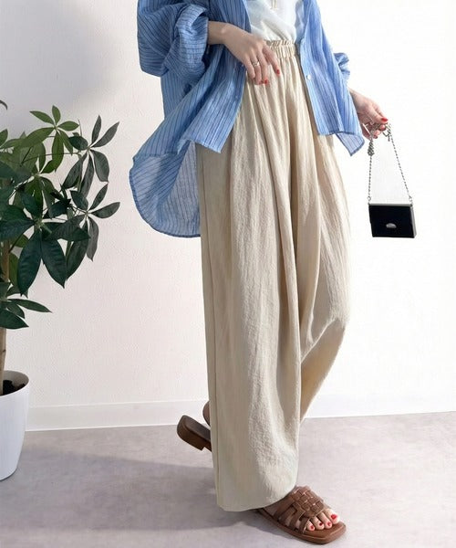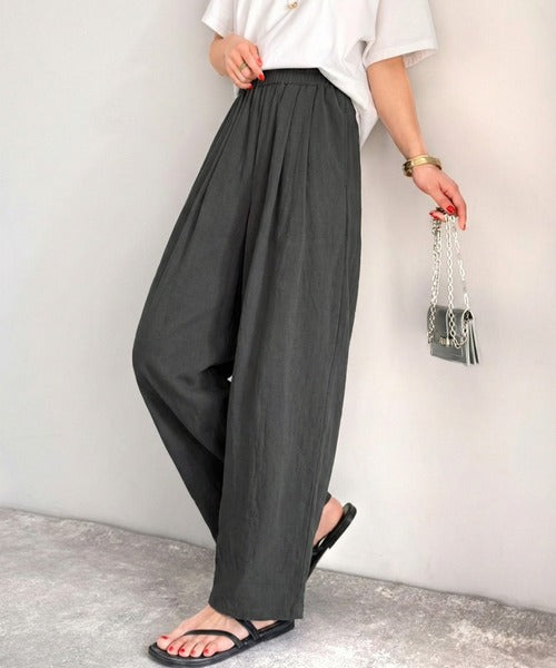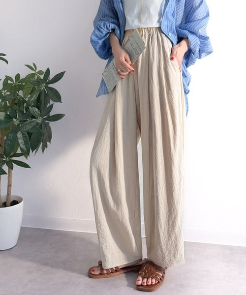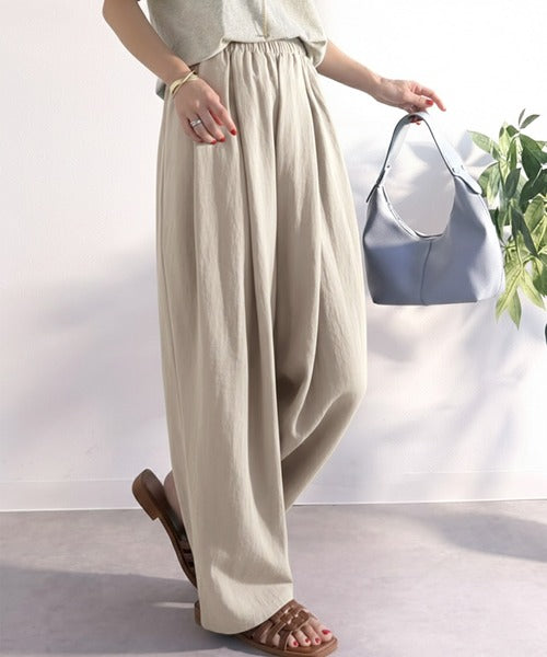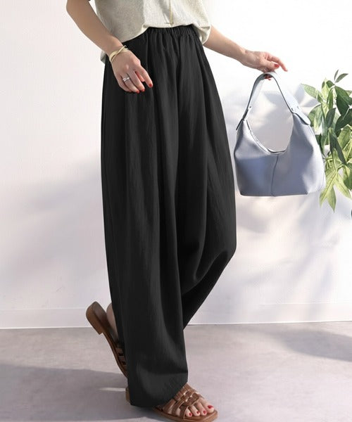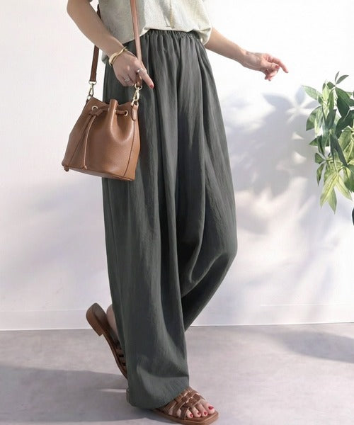 麻調のレーヨンナイロン素材を使用しており、涼しげな穿き心地。