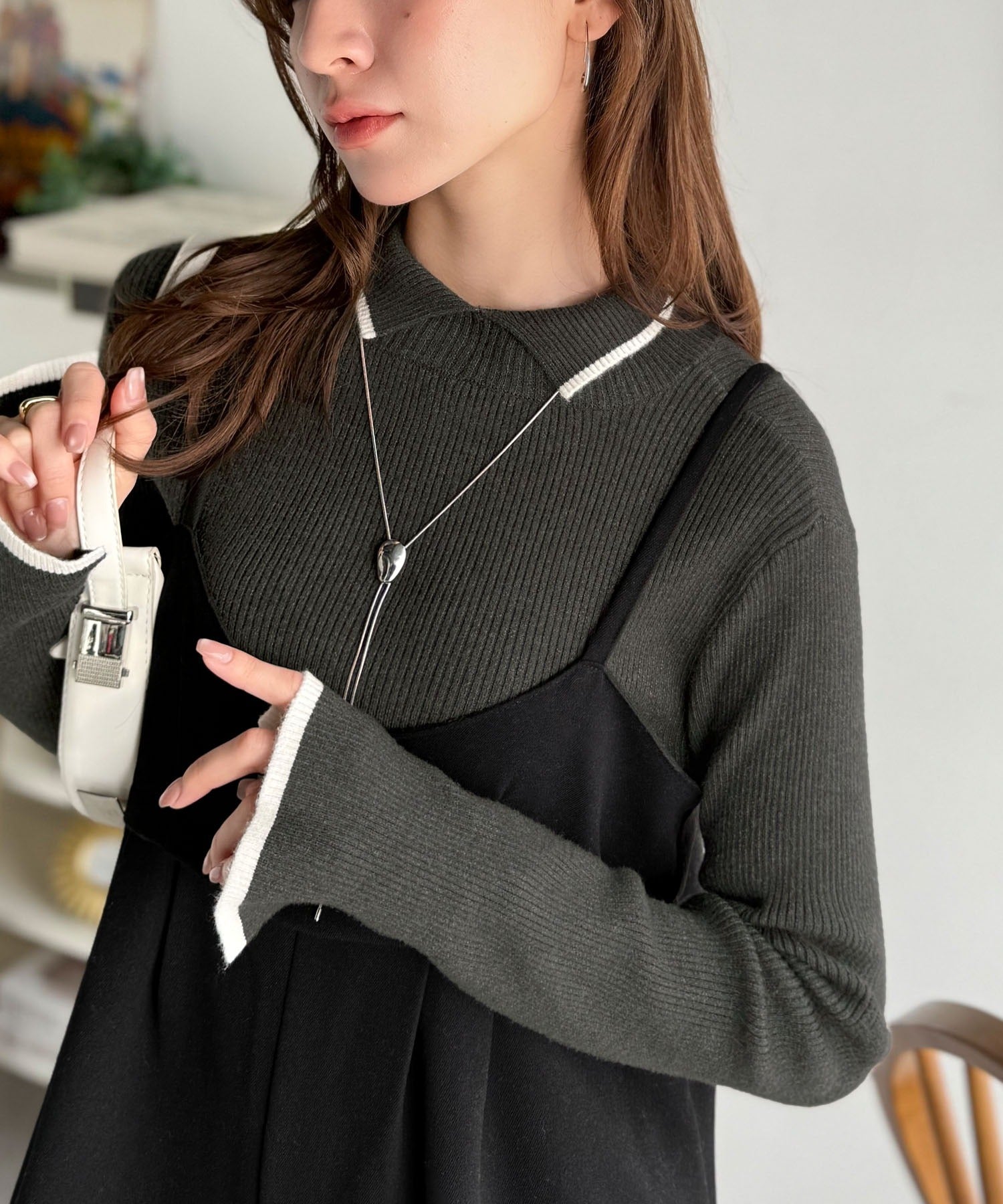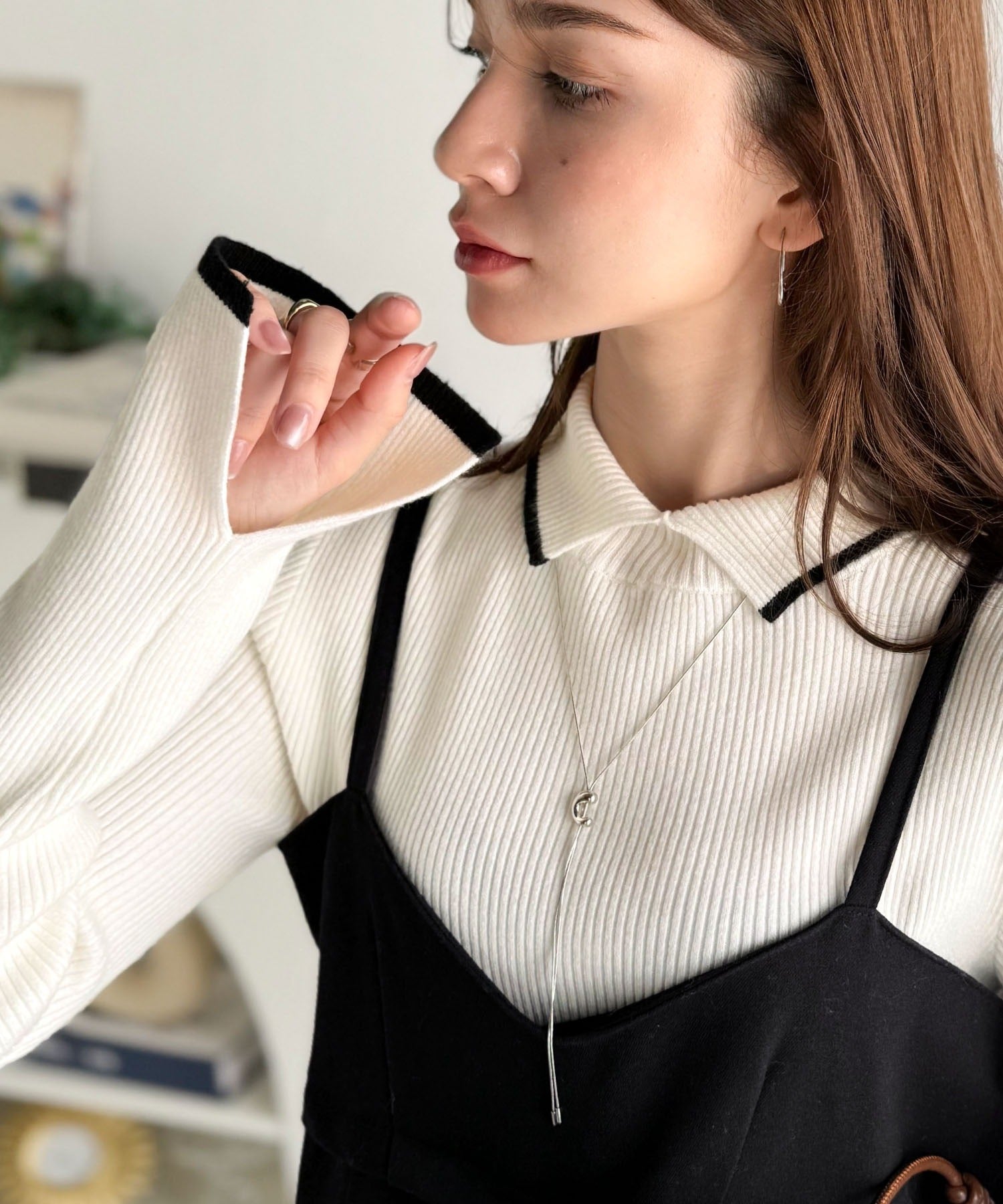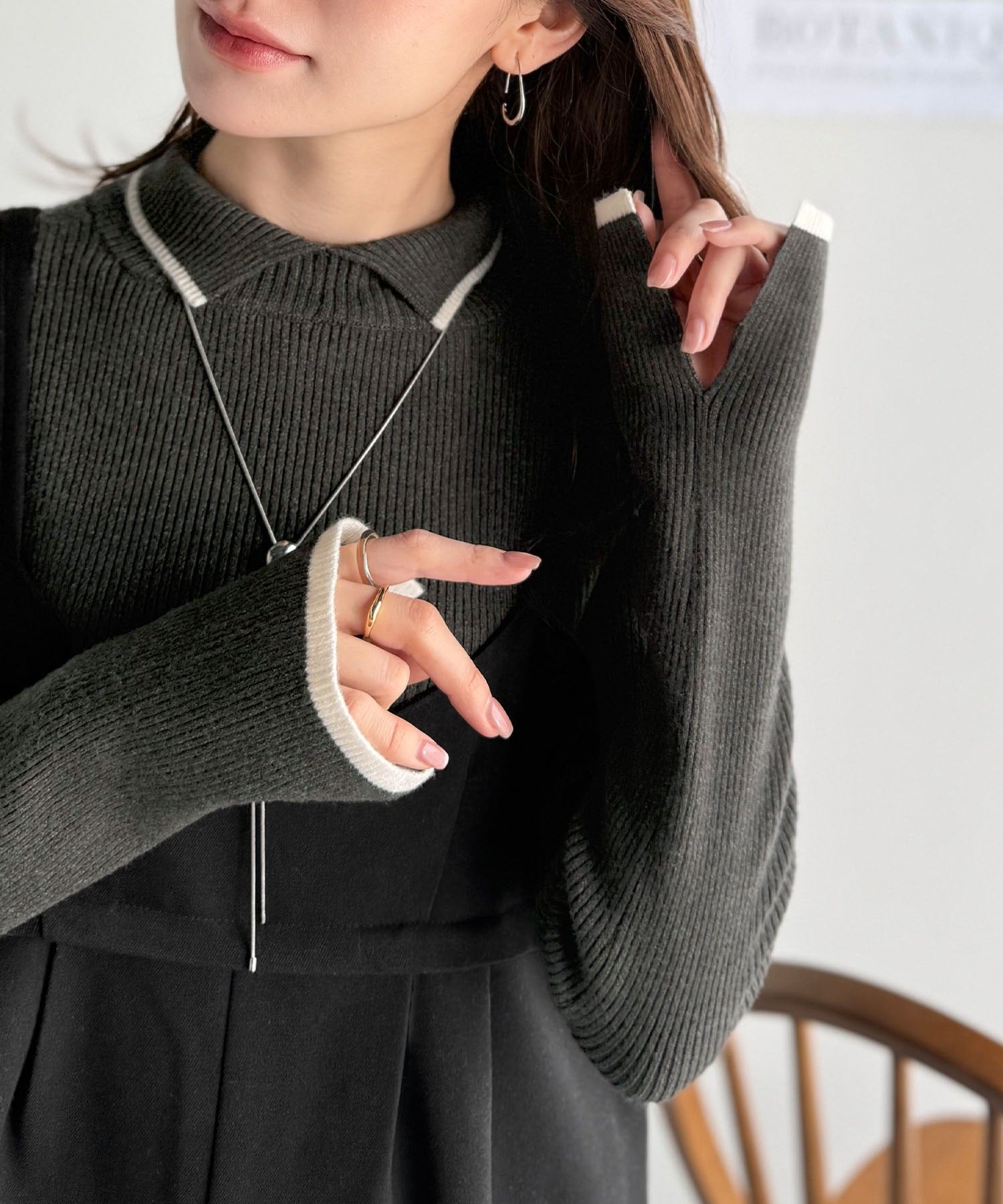 上品さと抜け感を両立する、大人のための配色リブニット。