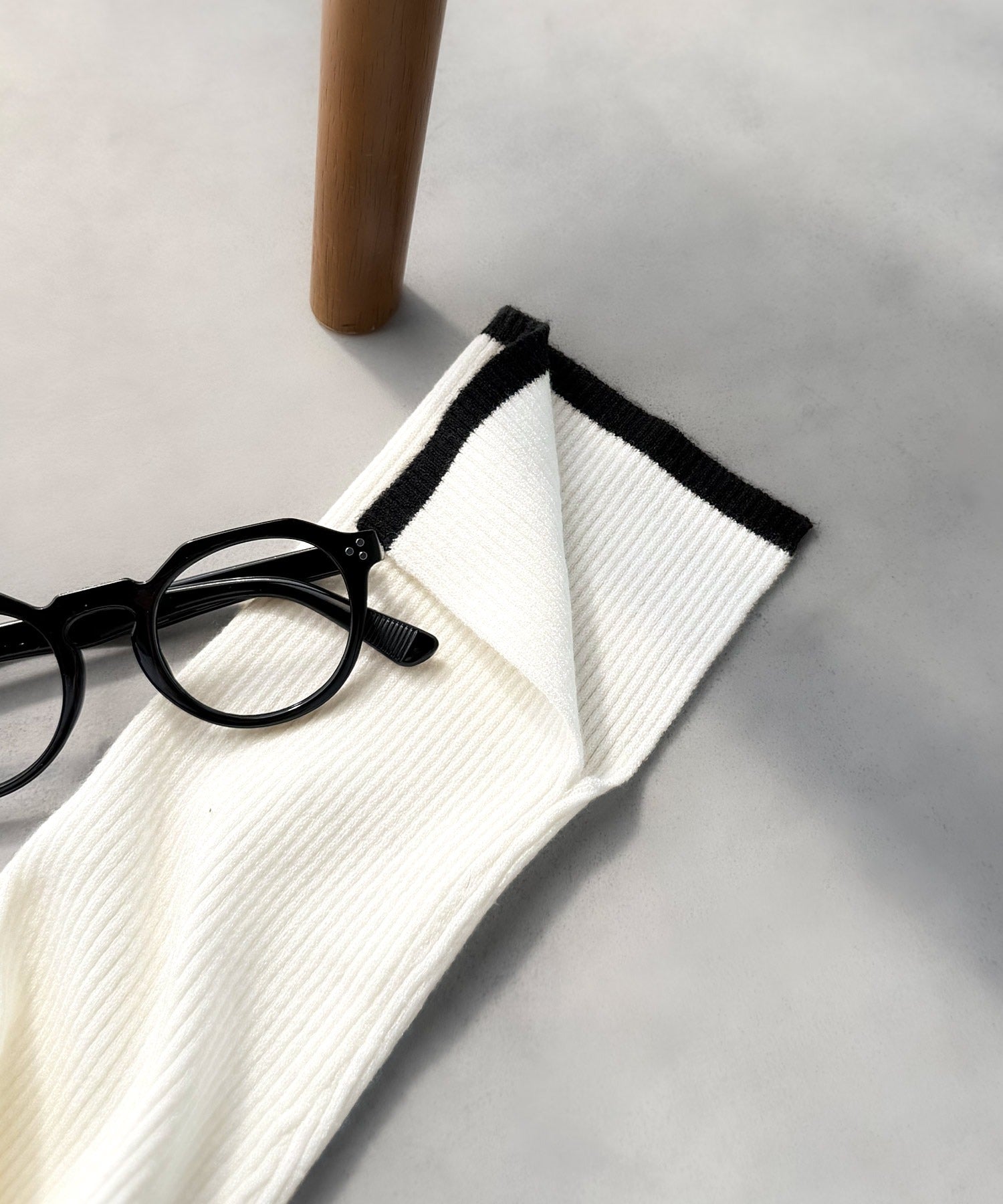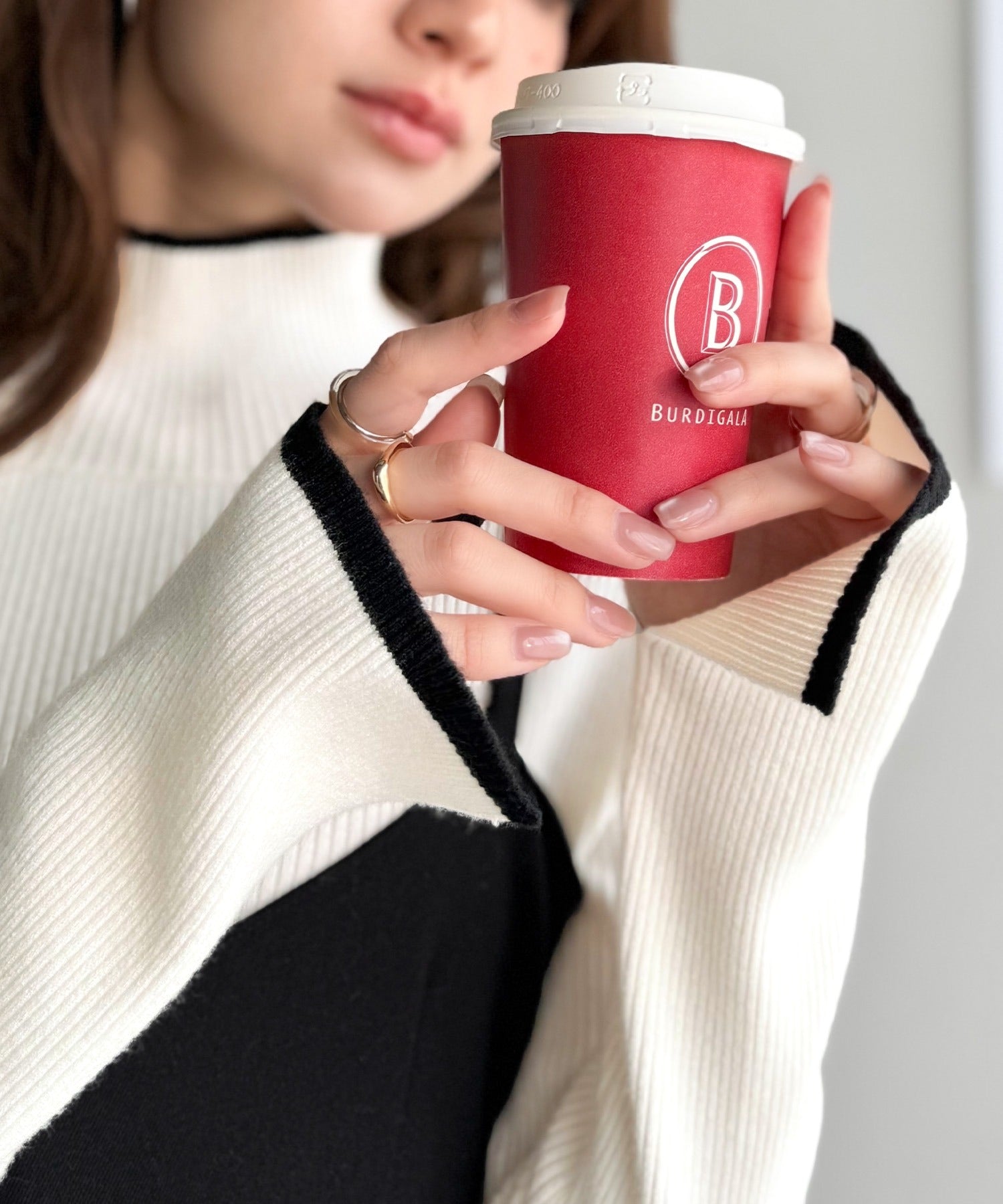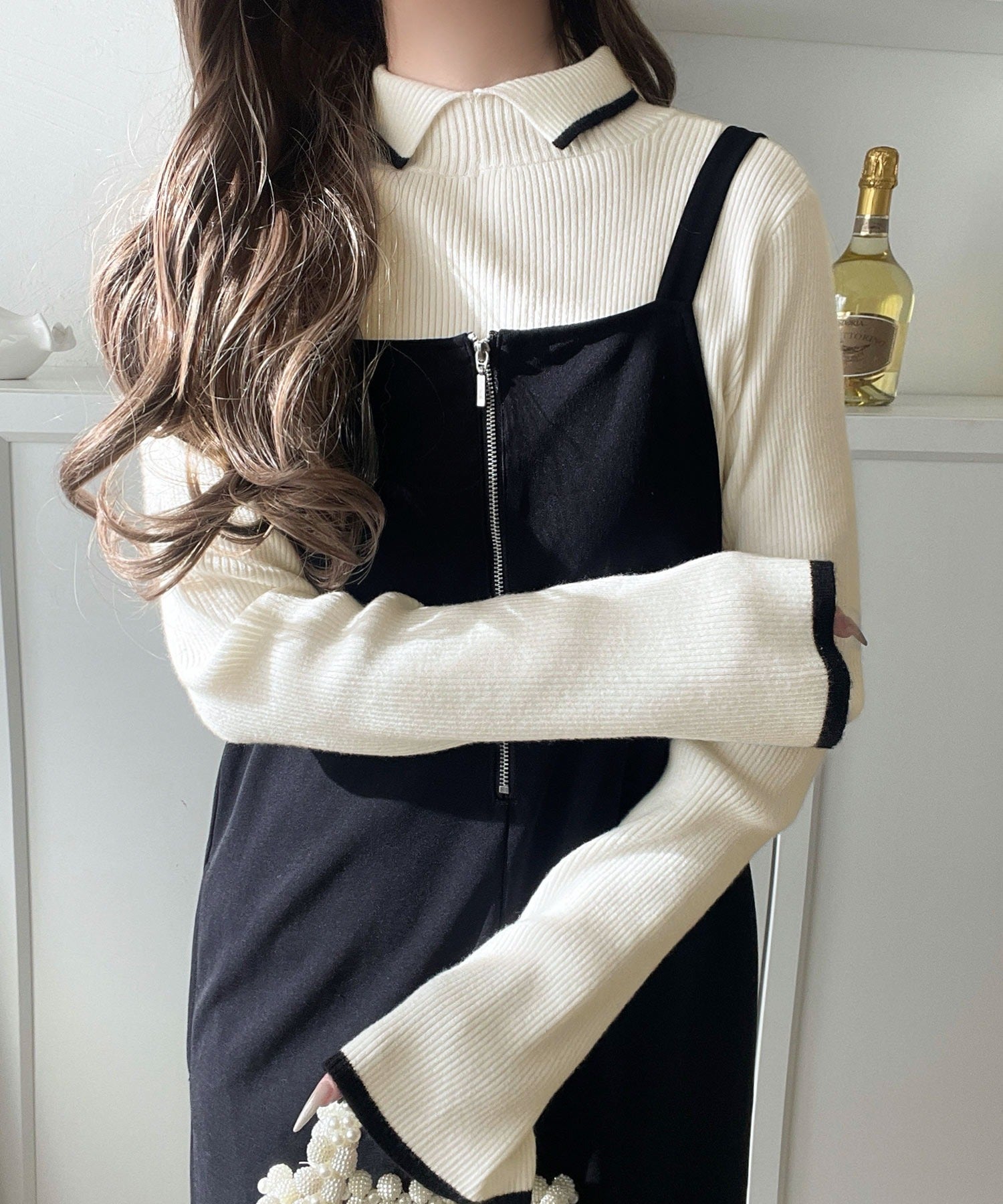 上品さと抜け感を両立する、大人のための配色リブニット。