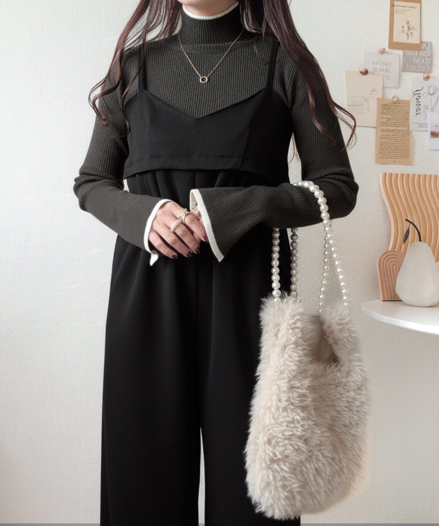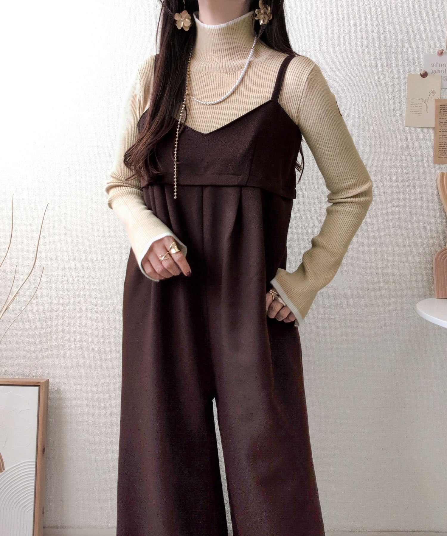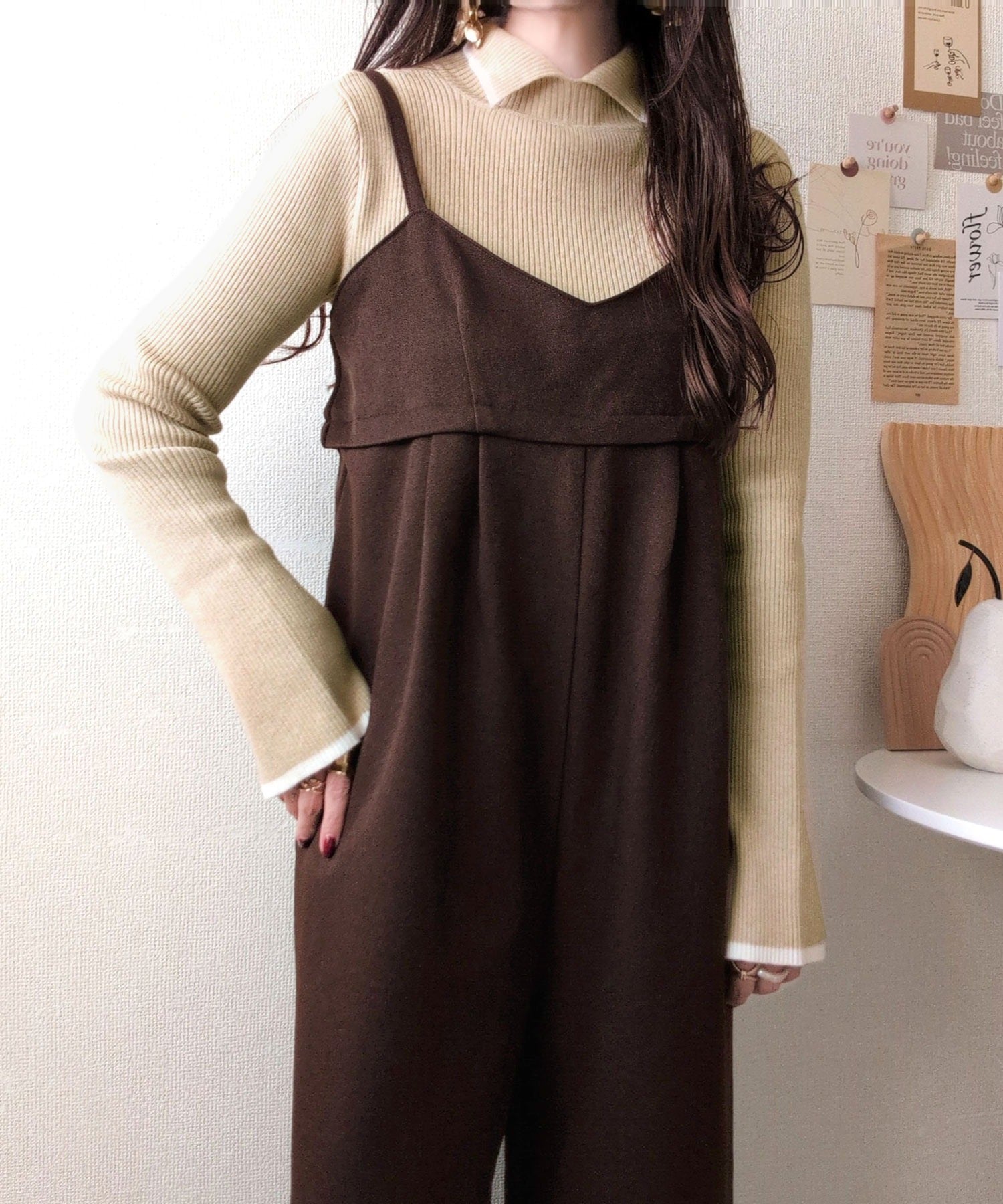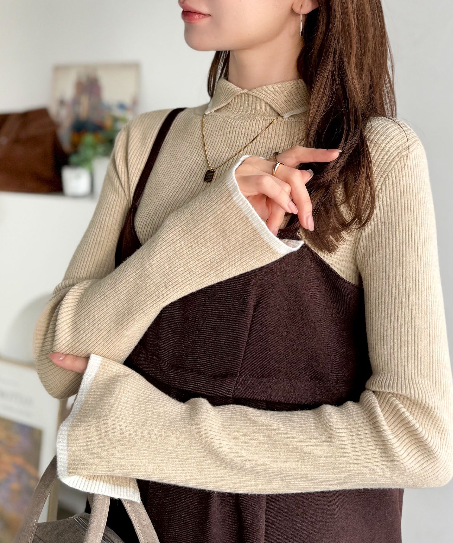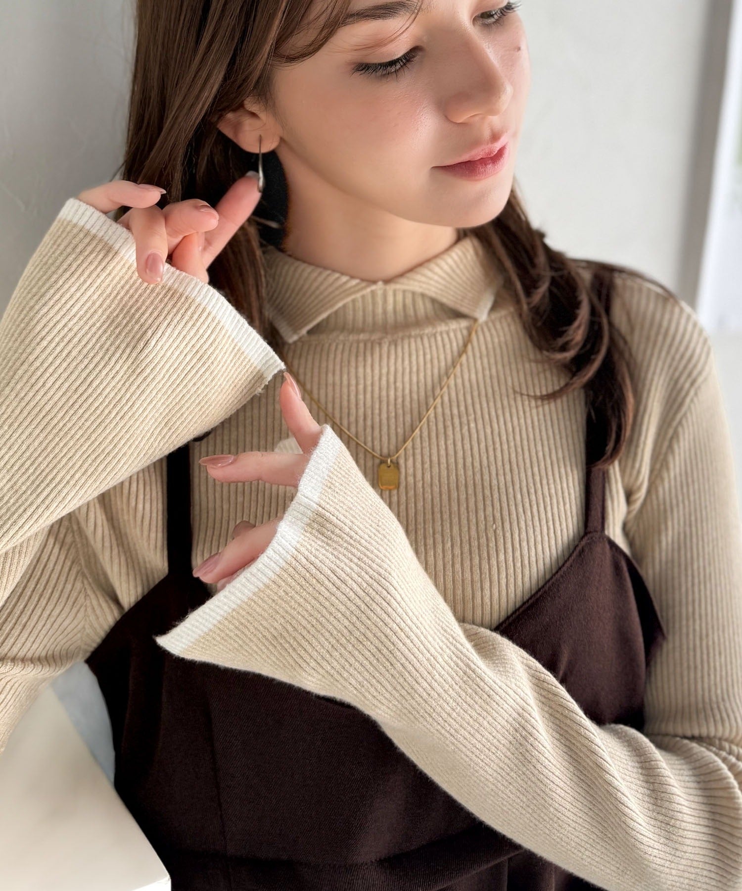 《daaco×クラシカルエルフコラボ》スタイリングが一気に垢抜ける。上品配色が映える袖スリット入り前後2WAYハイネックリブニット ce1350010