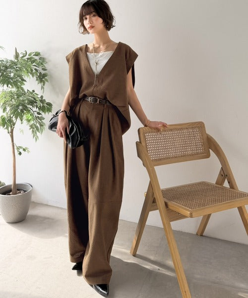 【Classical Evon】歩く姿も、様になる。リネンライクインタックコクーンパンツ(セットアップ可) ev1070205
