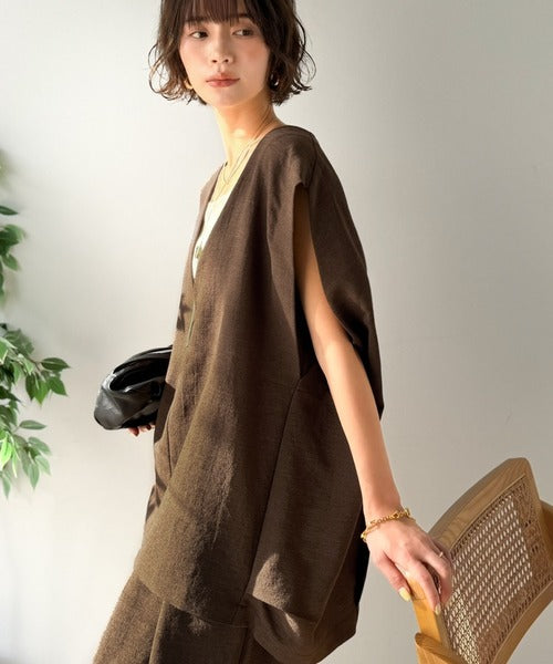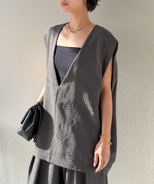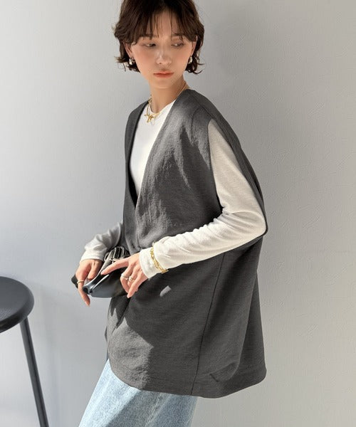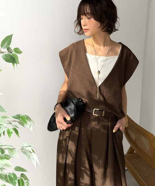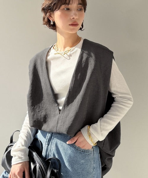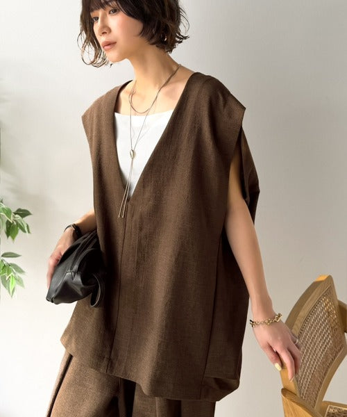 【Classical Evon】シンプルな品をまとう。リネンタッチベスト(Vネック) ev1070206
