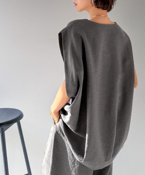 通気性に優れたリネンタッチ素材を使用し、軽く涼やかで上品な表情が魅力